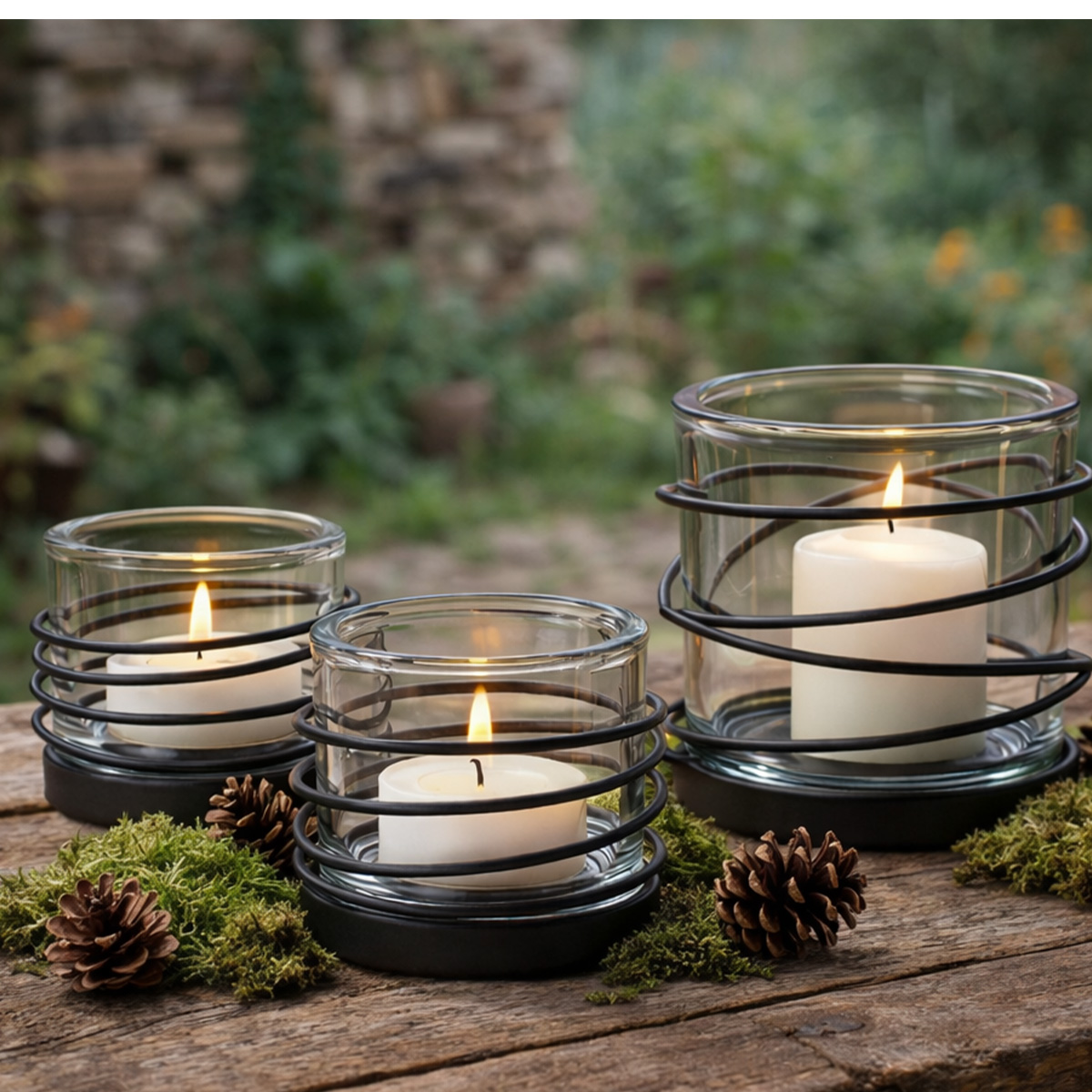 Das Zusammenspiel aus transparentem Glas und dunklem Eisen wirkt zeitlos und modern. Ob mit einem Teelicht, einer kleinen Kerze oder dekorativ befüllt – Jill sorgt für eine stimmungsvolle Lichtatmosphäre und passt sowohl in minimalistische als auch in rustikal inspirierte Wohnkonzepte.