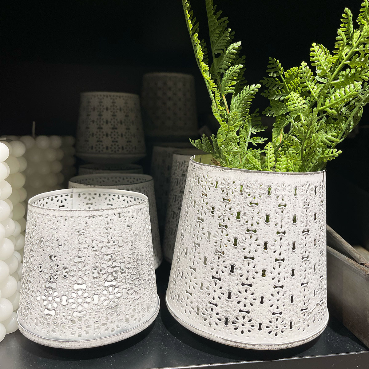 Deko Windlicht Ornament Antik, durchscheinend, weiß used look, 8x9cm, Metall