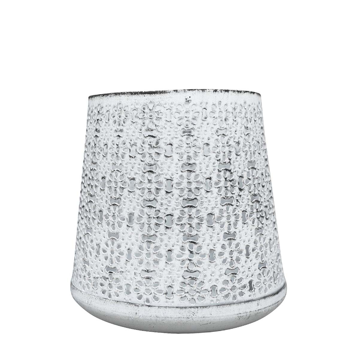 Deko Windlicht Ornament Antik, durchscheinend, weiß used look, 9x13cm, Metall