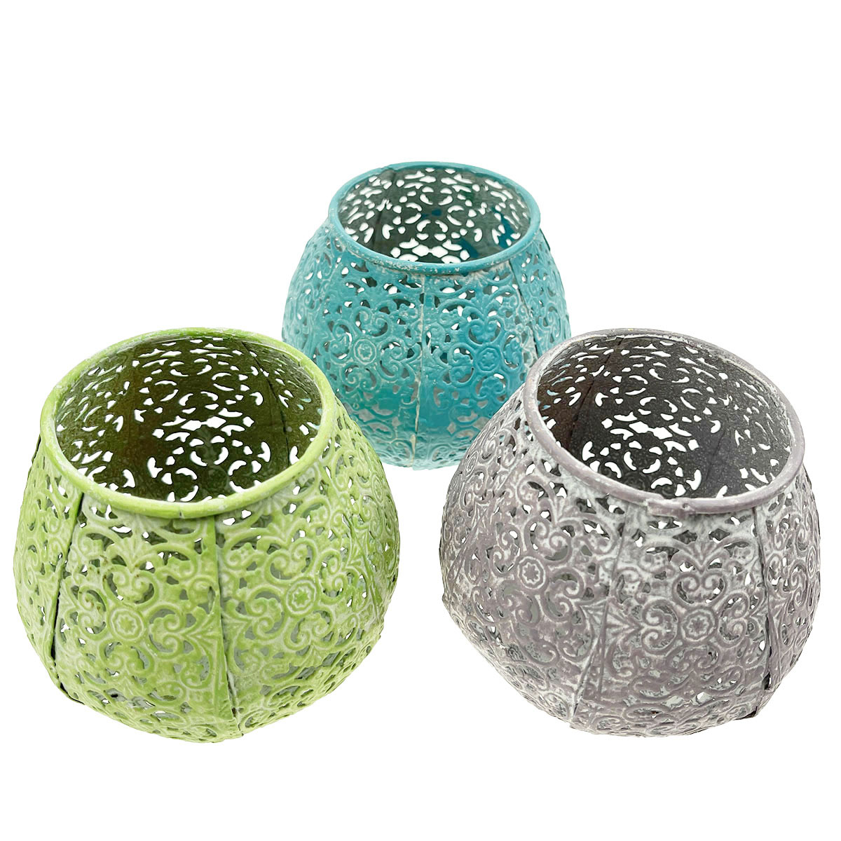 Deko Windlicht Ornament, Kerzenhalter flieder, shabby chic, 10x8cm, Metall