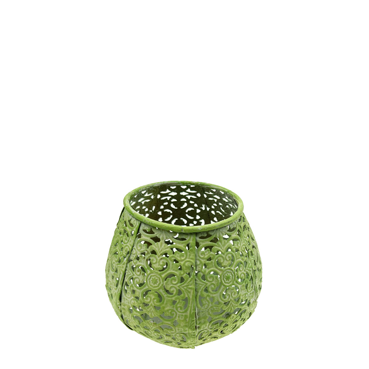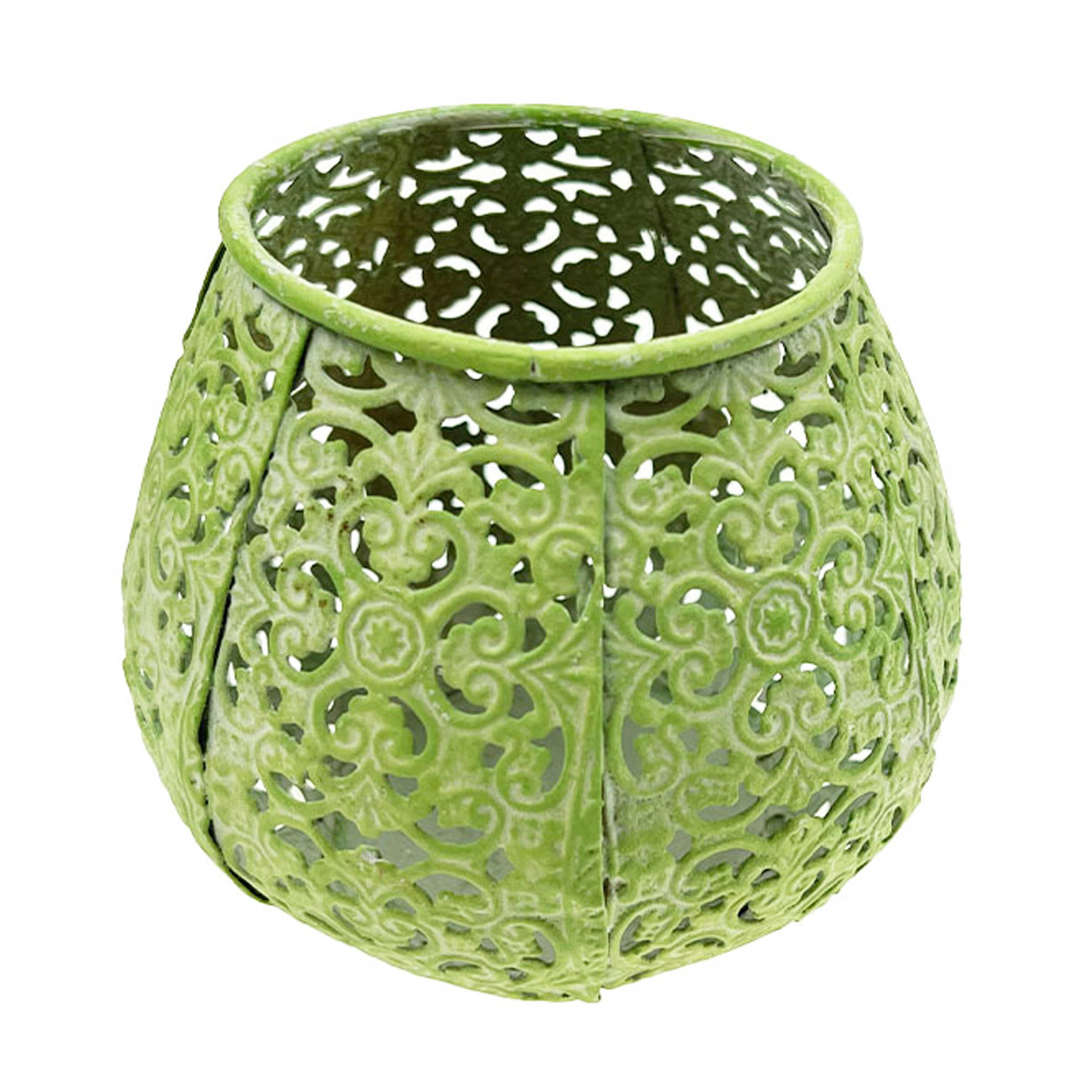 Deko Windlicht Ornament, Kerzenhalter grün, shabby chic, 10x8cm, Metall