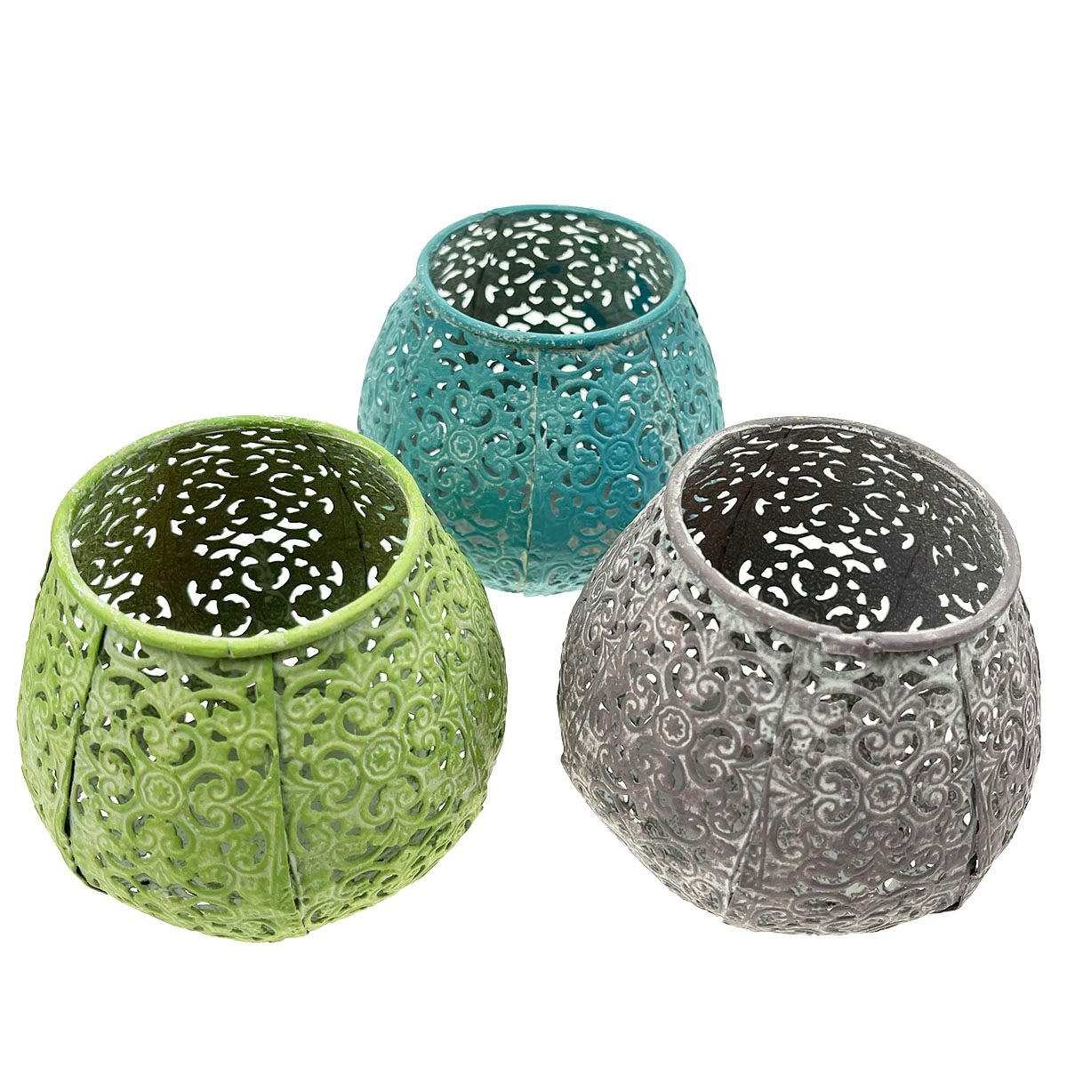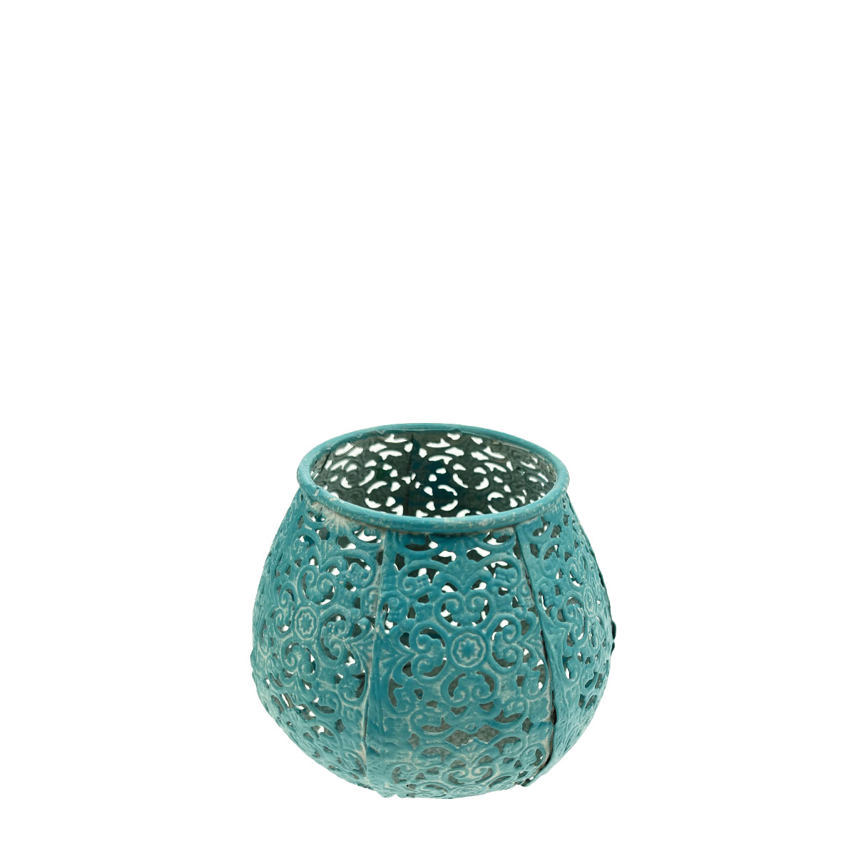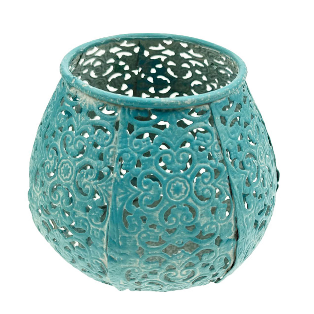 Deko Windlicht Ornament, Kerzenhalter türkis, shabby chic, 10x8cm, Metall