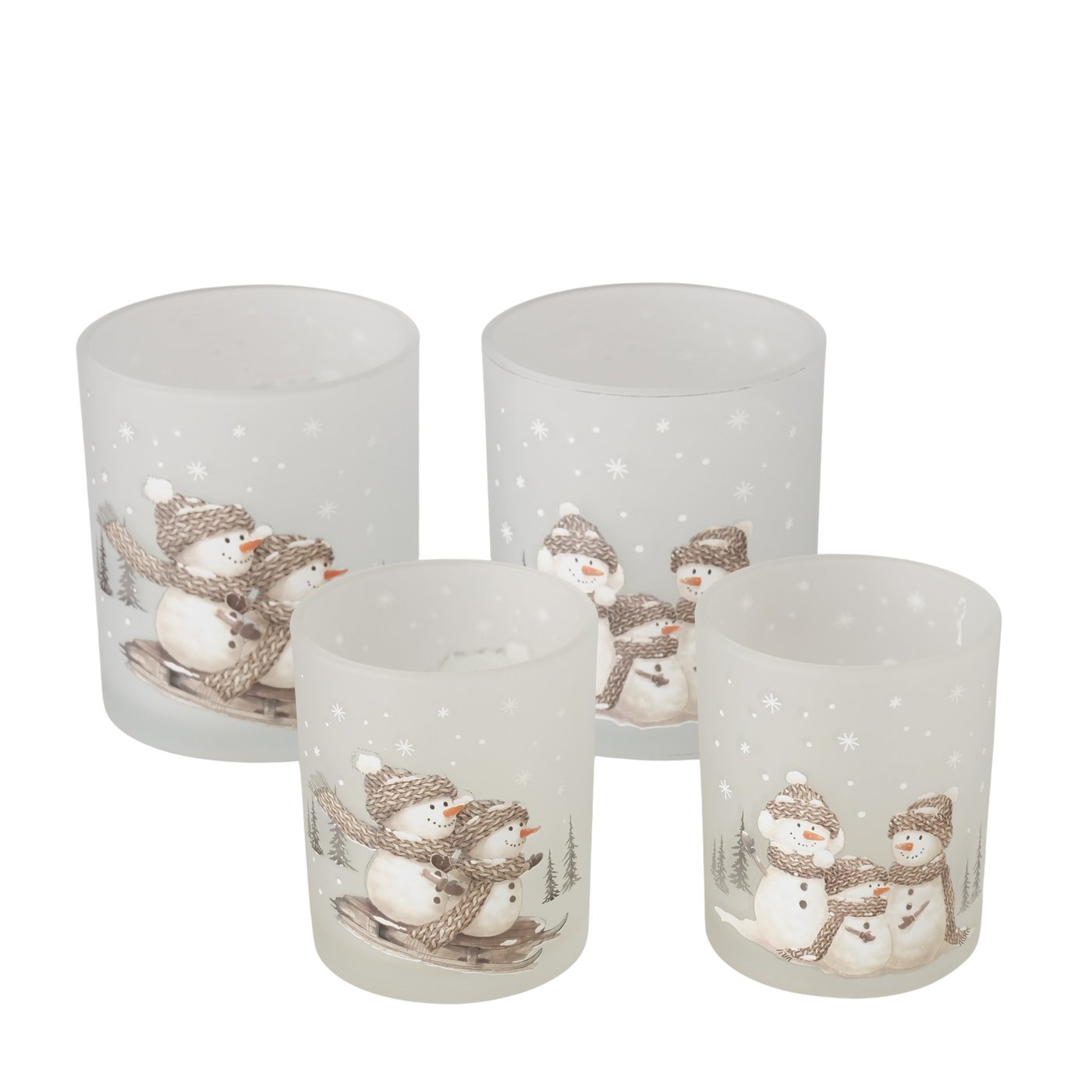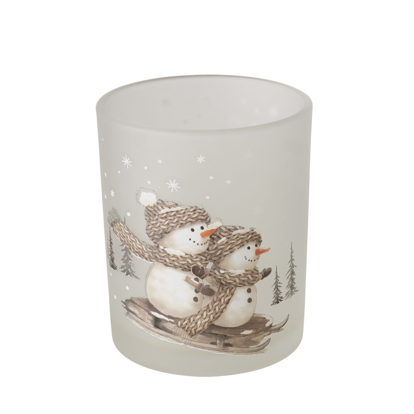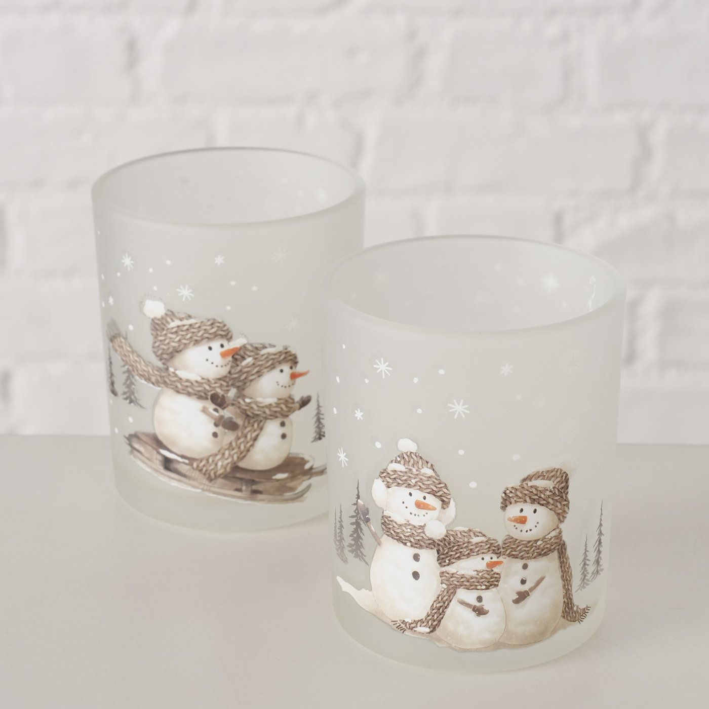 Deko Windlicht Schneemann Frosty, Kerzenglas matt, 8cm, Boltze Home Collection