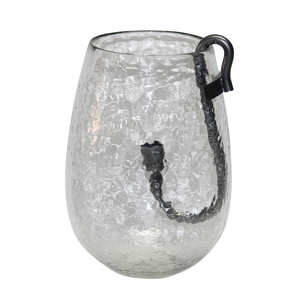 Deko Windlicht Verre ovale Form, Glaswindlicht mit abnehmbarem Stabkerzenhalter aus Metall, 17x17x24cm