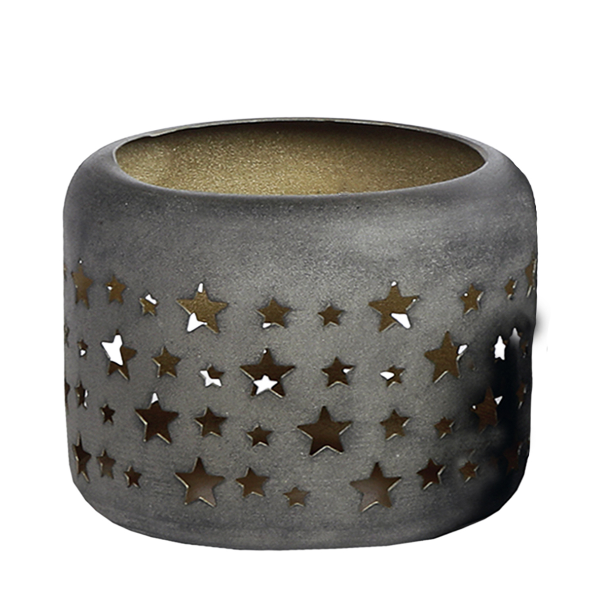 Deko Windlicht Weihnachtssterne Antik grau-gold, Metallwindlicht durchscheinend, 13cm, WMG Grünberge