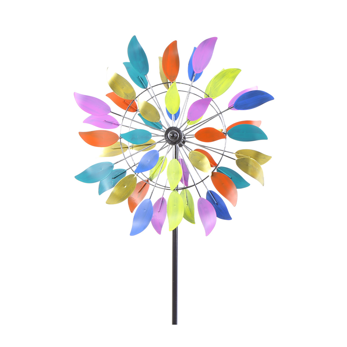 Deko Windrad bunt, doppelreihiges Windrad mit bunten Blättern, 160cm, Metall