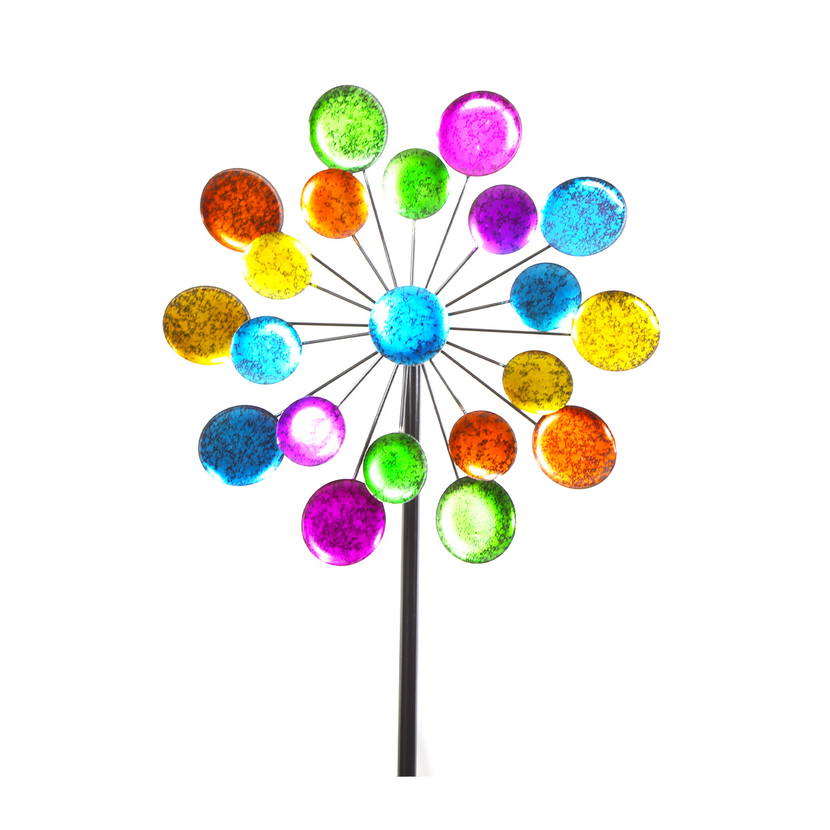 Produktinformationen "Deko Windrad bunt, doppelreihiges Windrad mit bunten Schalen, 122cm, Metall"