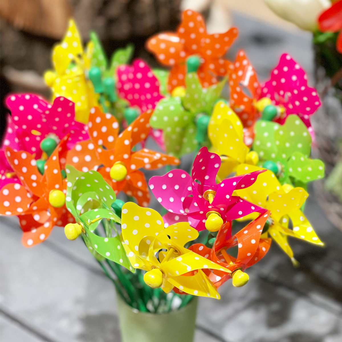 Deko Windrad, pink mit Punkte, 27cm, Kunststoff