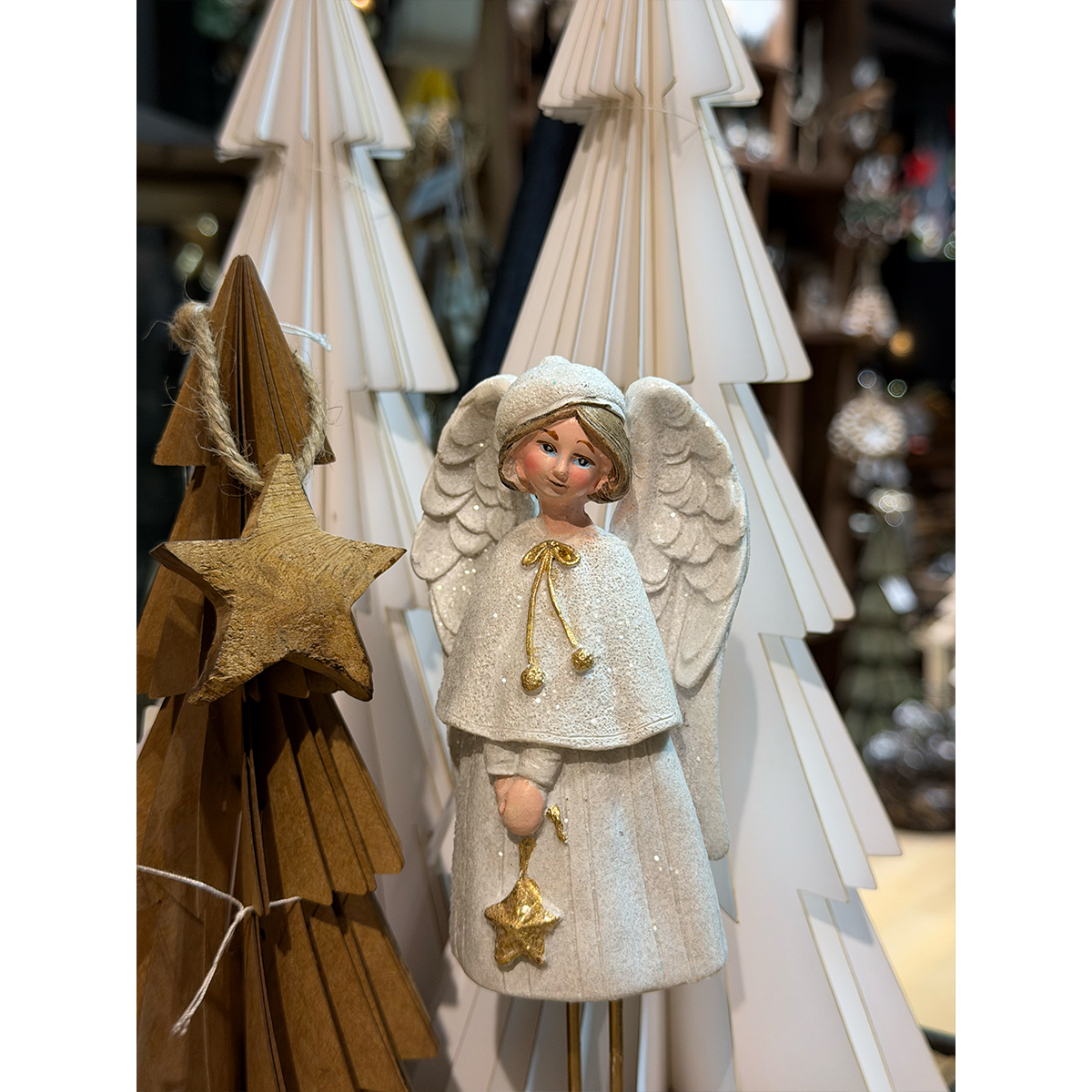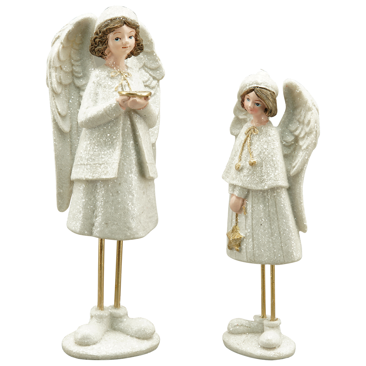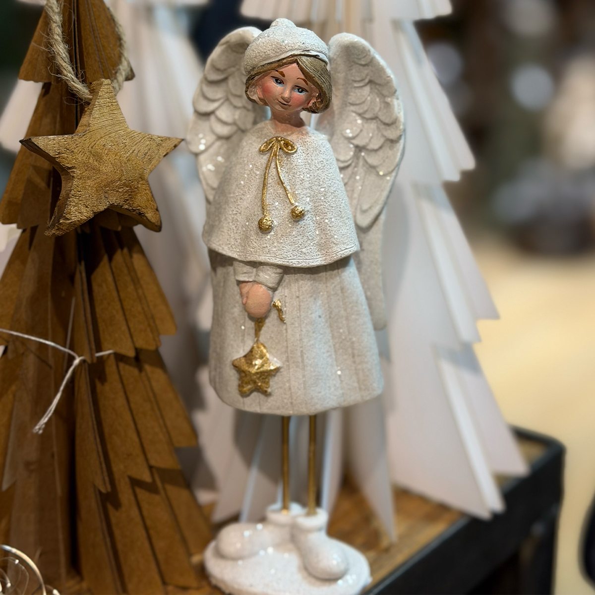 Deko Winterfigur Lilian, weißer Engel mit Stern, 18cm, Polyresin