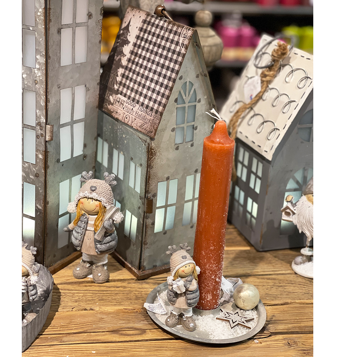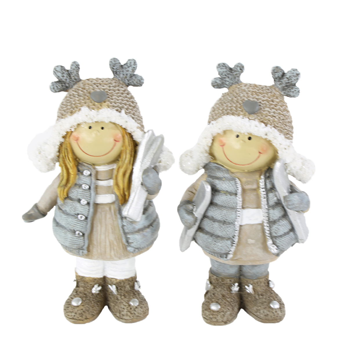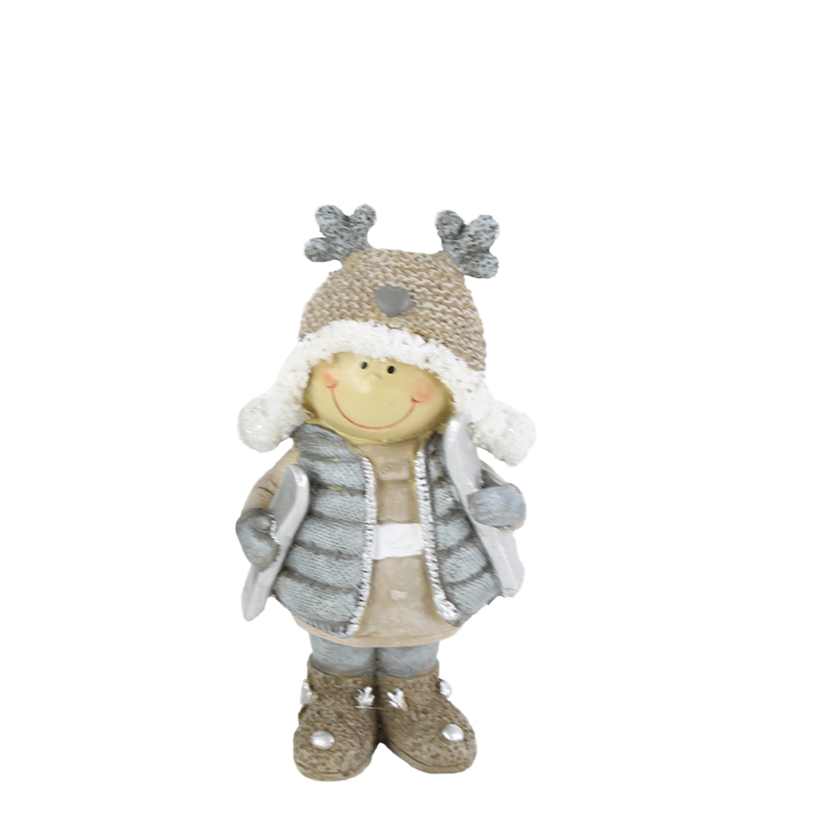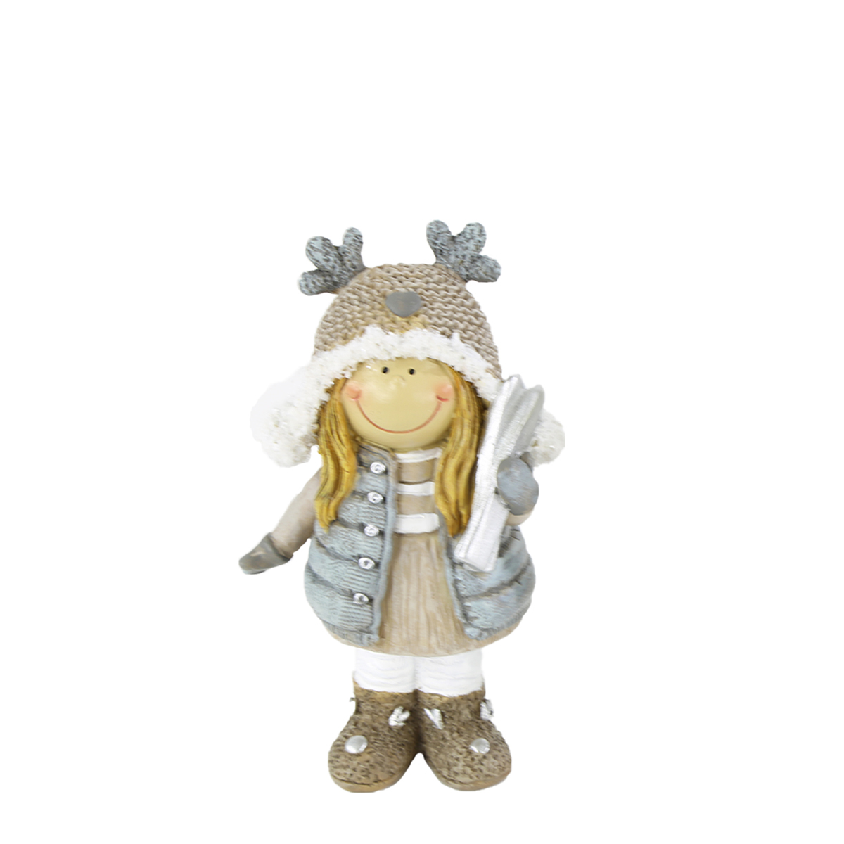 Deko Winterkind Mädchen mit Ski, Skifahrerin mit Mütze, 14cm