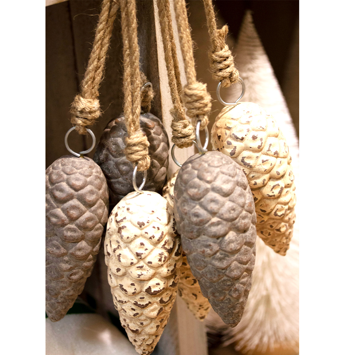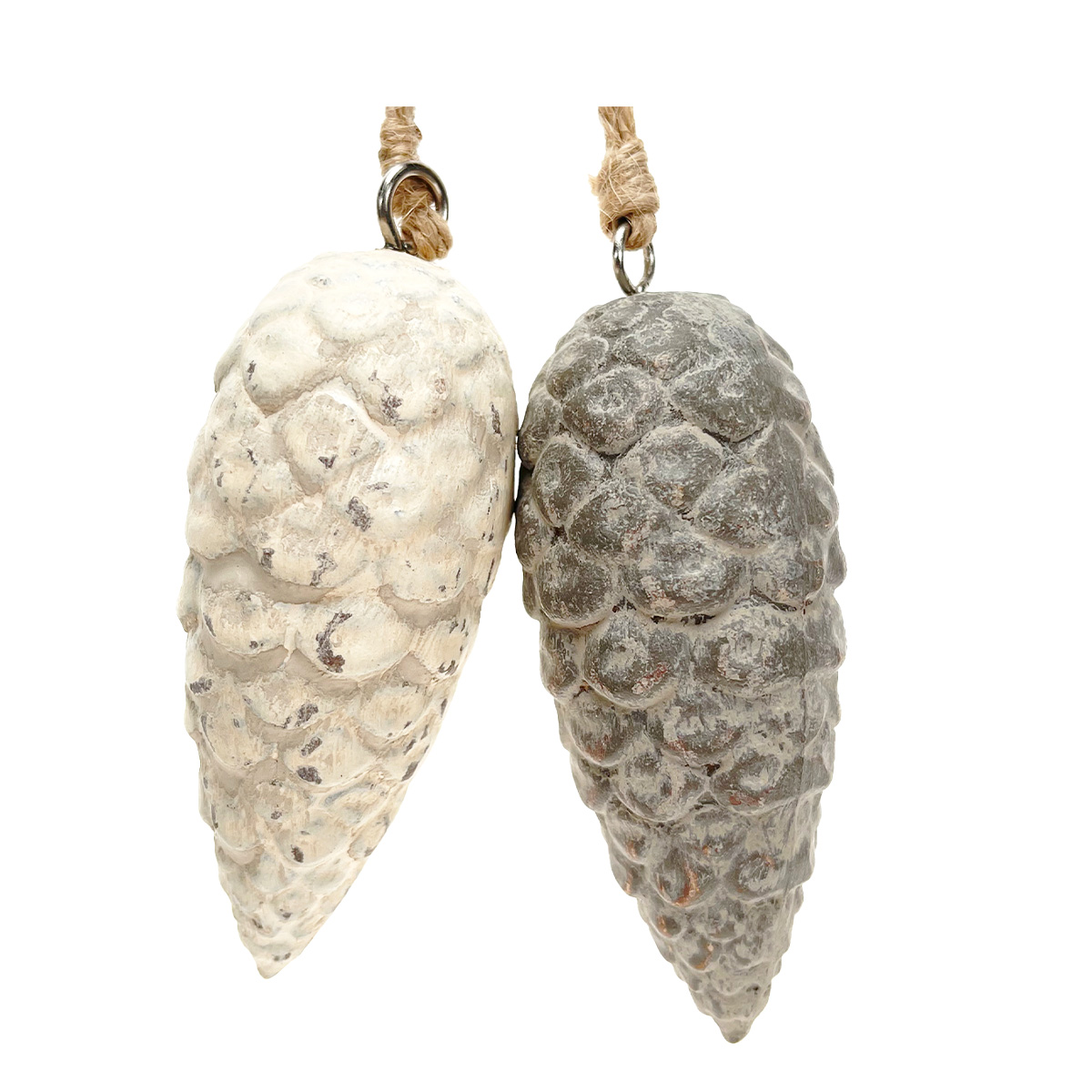 Deko Zapfen, Tannenzapfen grau used look, Zapfenhänger aus Keramik, 8cm