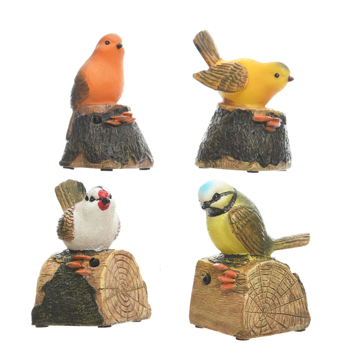 Deko Zwitschervögel, 4 versch Ausführungen, Vögel auf Baumstamm mit Sensor