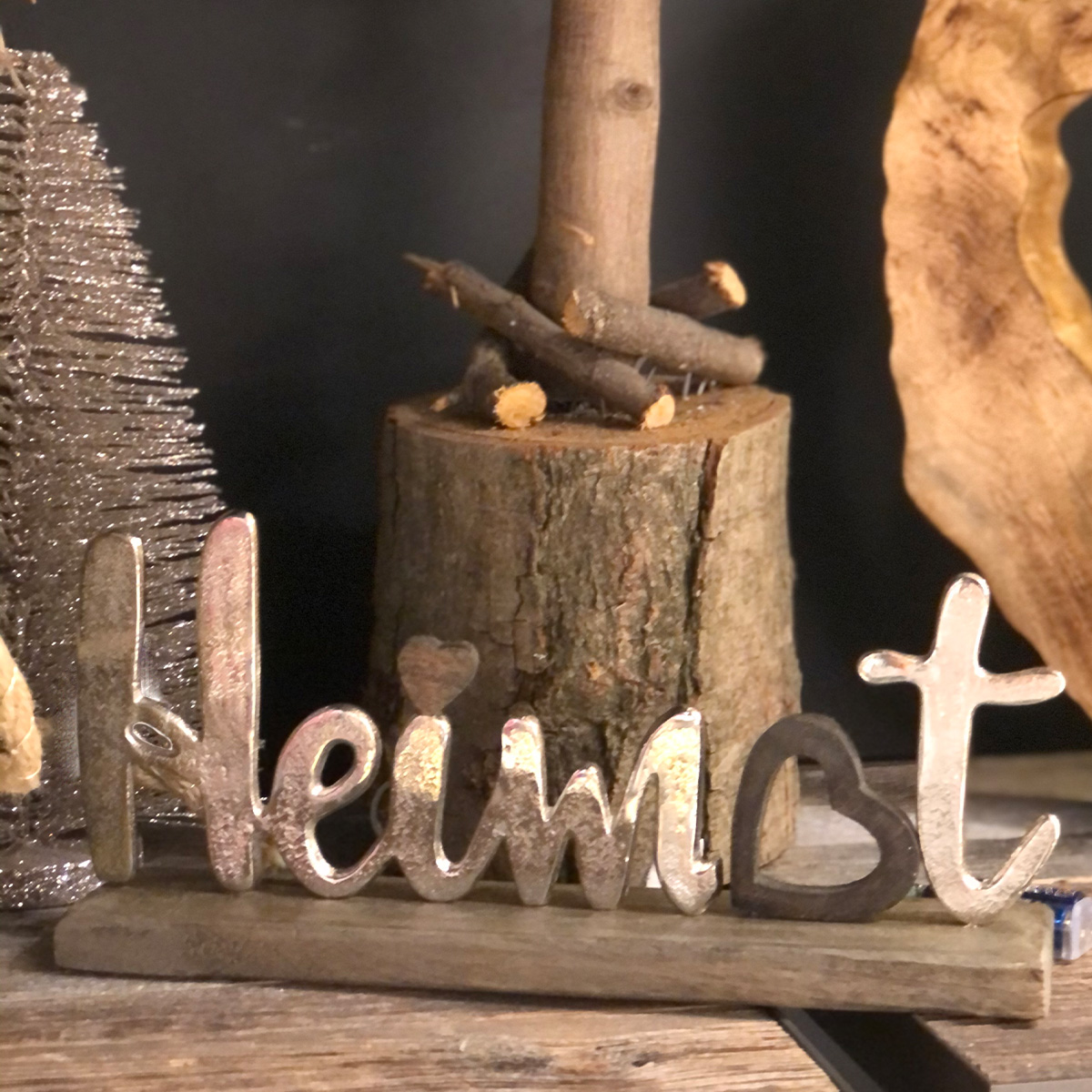 Dekoaufsteller Heimat, Schriftzug Heimat mit Herz auf Holzsockel, 32cm