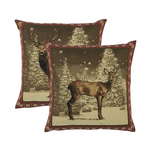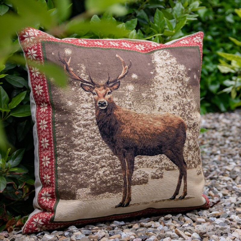 Gobelin Kissen Hirsch, Winterhirsch, roter Rand, 45x45cm, Mars & More