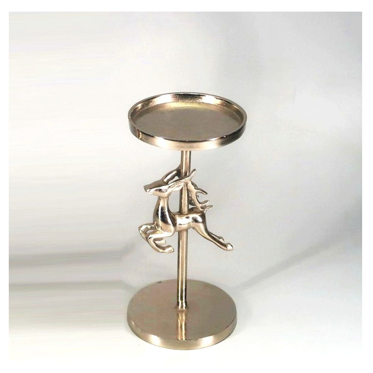 Dieser edle Kerzenständer mit springendem Hirsch vereint Anmut und Eleganz in einem außergewöhnlichen Design.