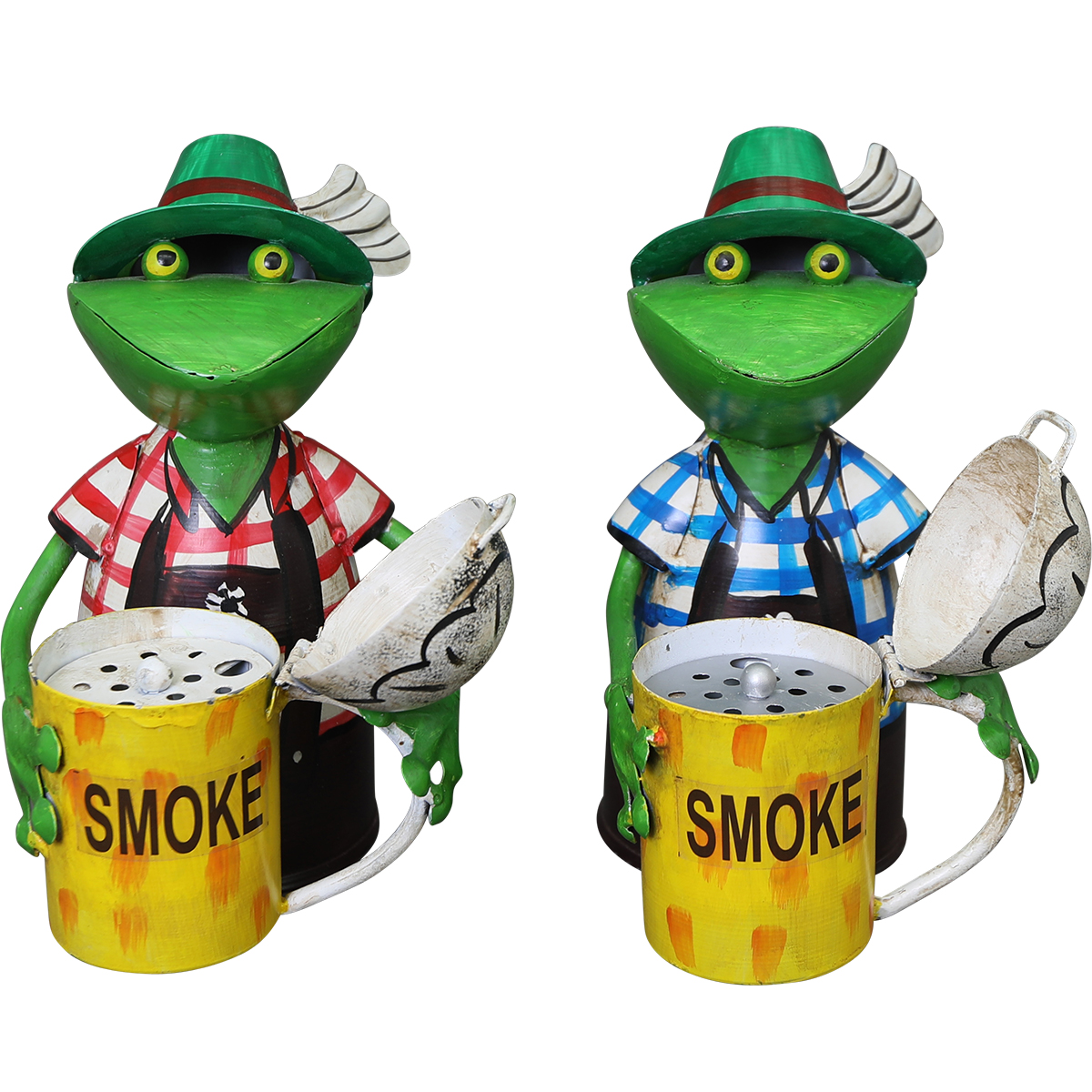 Gefertigt aus Metall und liebevoll gestaltet in kräftigen Farben wie grün und rot, verbindet dieser Frosch rustikale Optik mit einem charmanten Funktionsdetail. Ein kleines Highlight für draußen, das einfach gute Laune macht.
