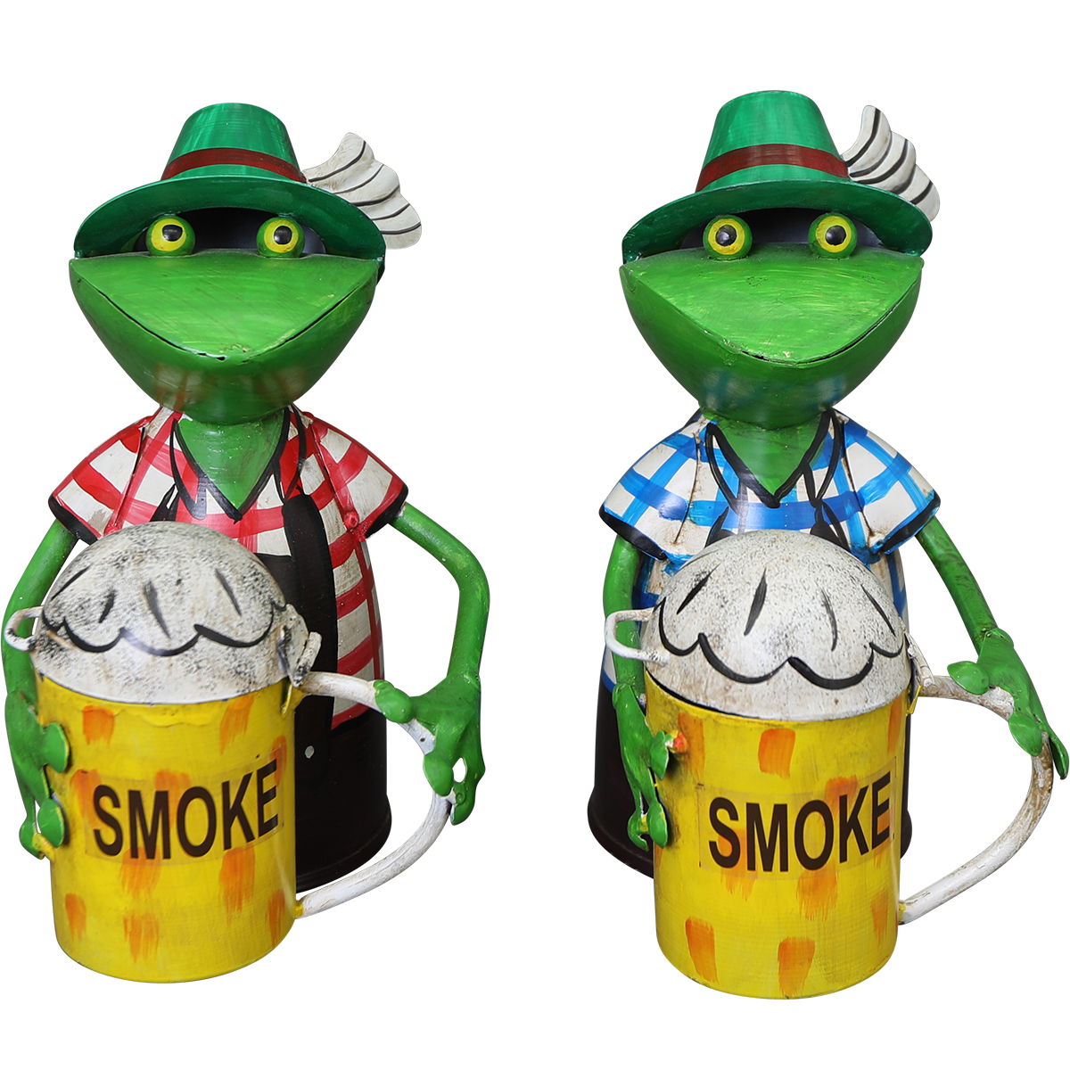 Zaunhocker Frosch Landhaus, Metallfrosch in Lederhose mit Aschenbecher Bierkrug, 22cm