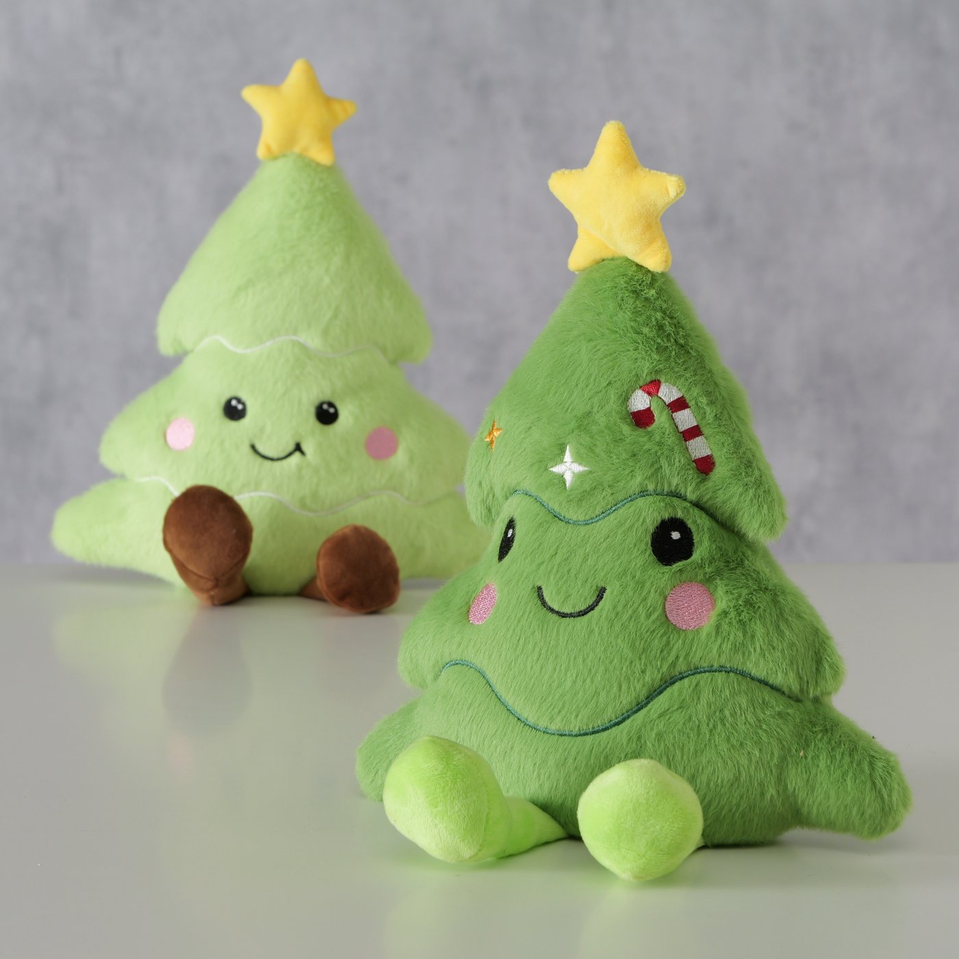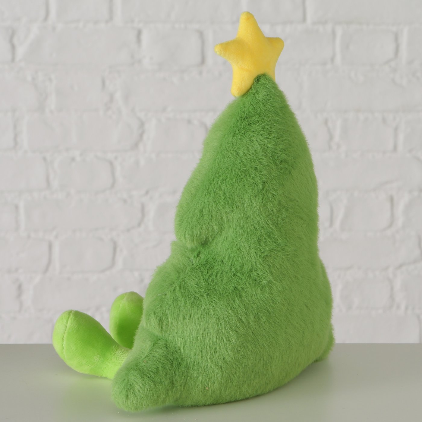 Plüschkissen-Kantenhocker kleiner Weihnachtsbaum grün mit Gesicht und Beine, Boltze Home Collection