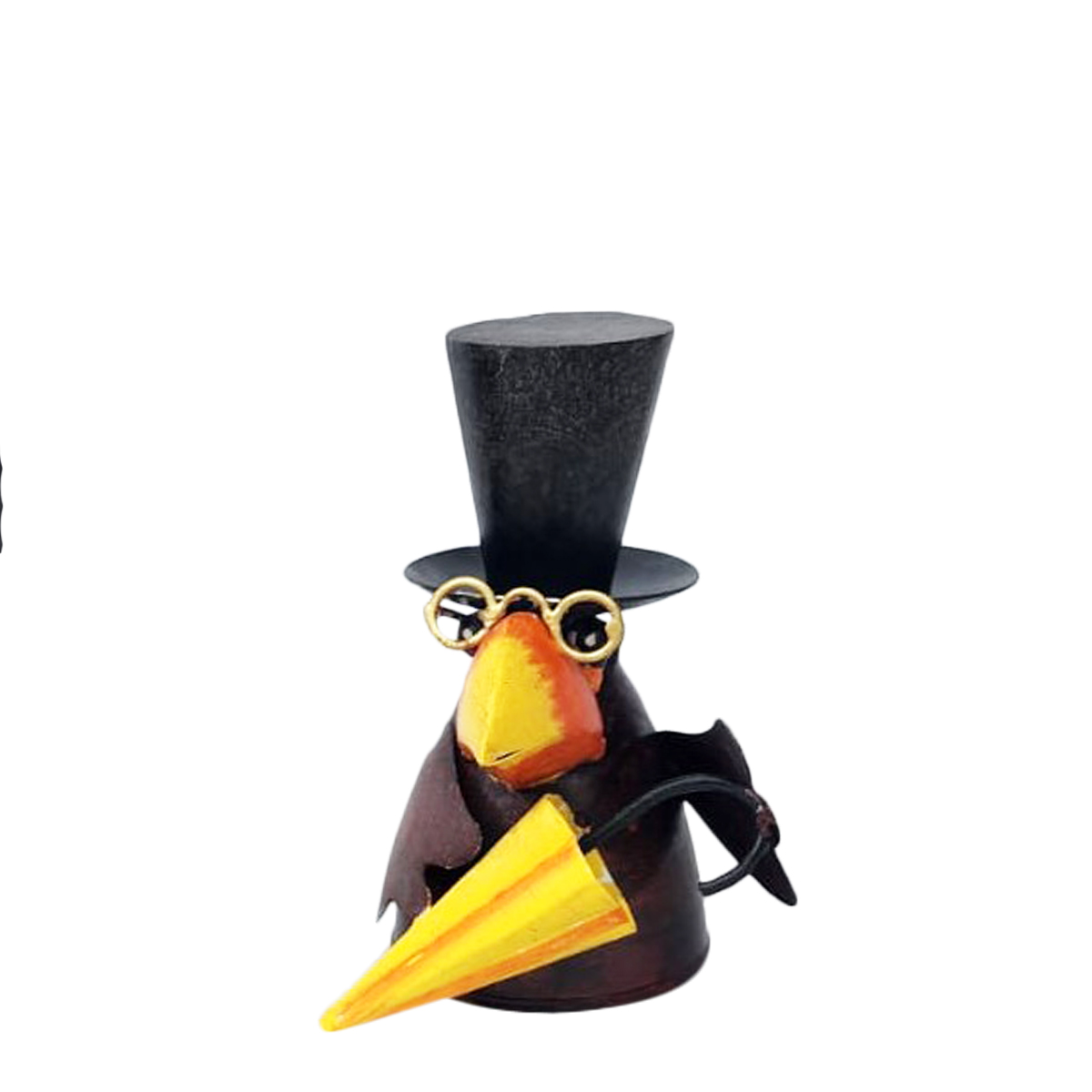 Zaunhocker Vogel, Rabe Rudi mit Zylinder und Regenschirm, 17cm, Metall