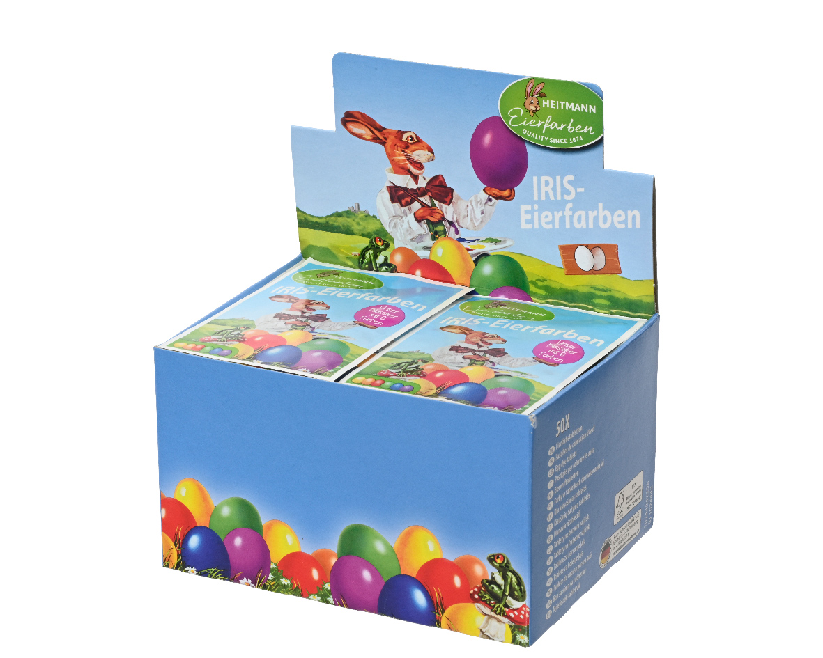 Herstellerinformationen zu "Eierfarben Iris, 6 Farbtabletten: gelb, orange, rot, grün, blau, lila, Heitmann"