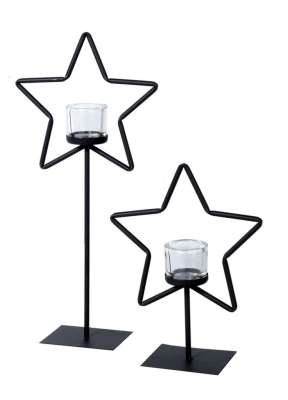 Eisen Windlicht Stern, Weihnachtsstern auf Metallständer, 30cm, WMG Grünberger