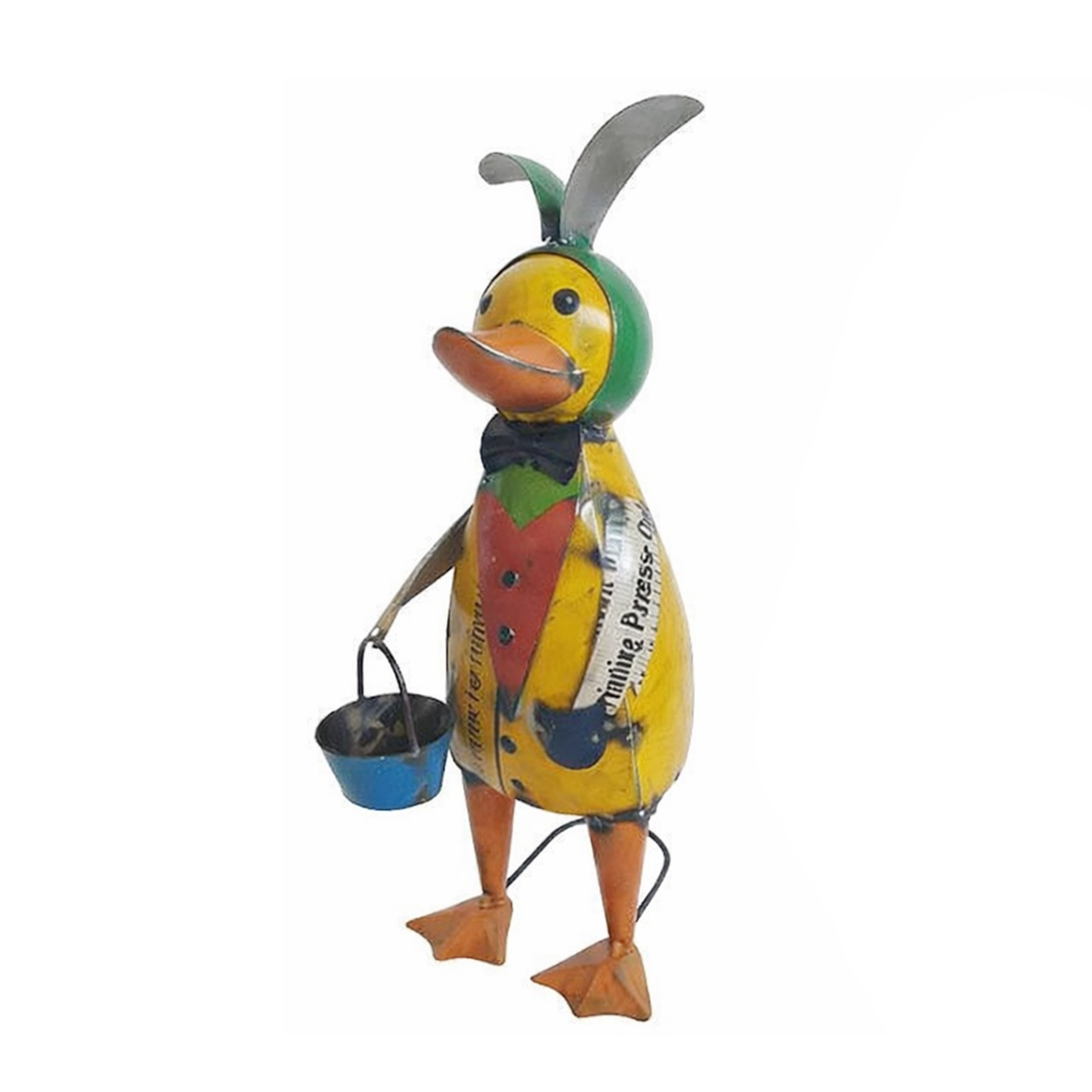 Ente mit Eimer, lustige Metallente im Shabby Look, 38cm