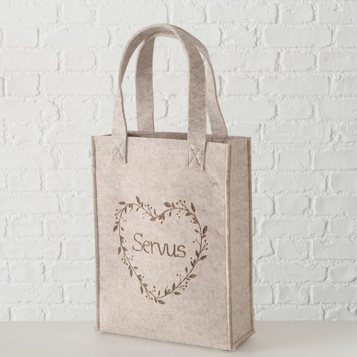 Filz Tasche Garni beige, Filztasche mit Herz und Spruch: Servus, 28x40cm, Boltze Home Collections