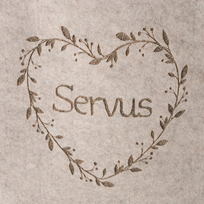 Herstellerinformationen zu "Filz Tasche Garni beige, Filztasche mit Herz und Spruch: Servus, 28x40cm, Boltze Home Collections"
