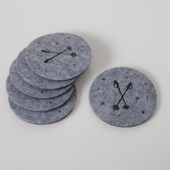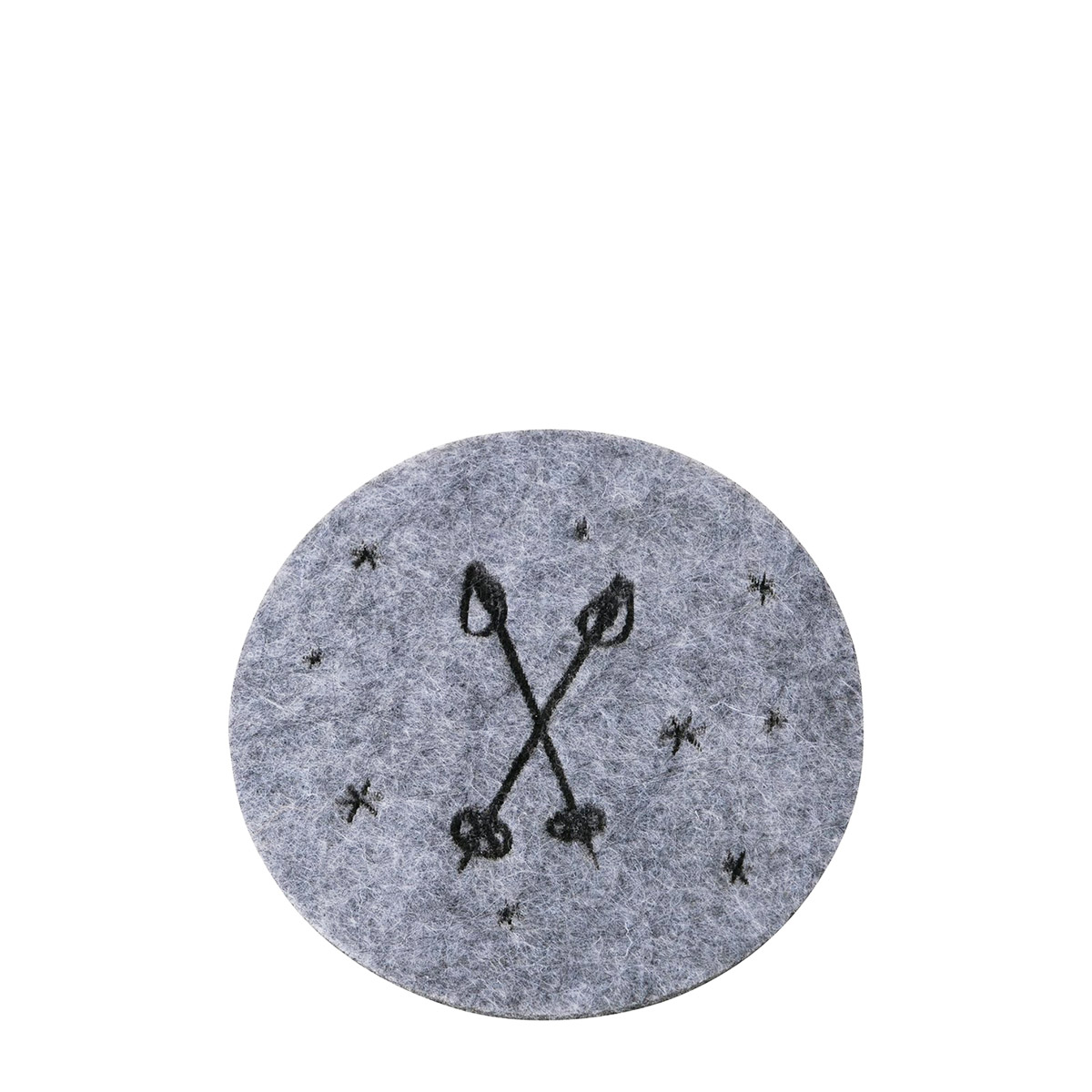 Filz Untersetzer Mountains Skistöcke, Ø10cm, grau, 6tlg, Boltze Home Collections