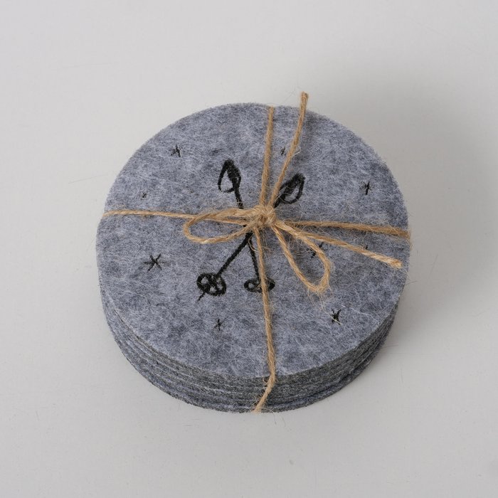 Produktinformationen "Filz Untersetzer Mountains Skistöcke, Ø10cm, grau, 6tlg, Boltze Home Collections"