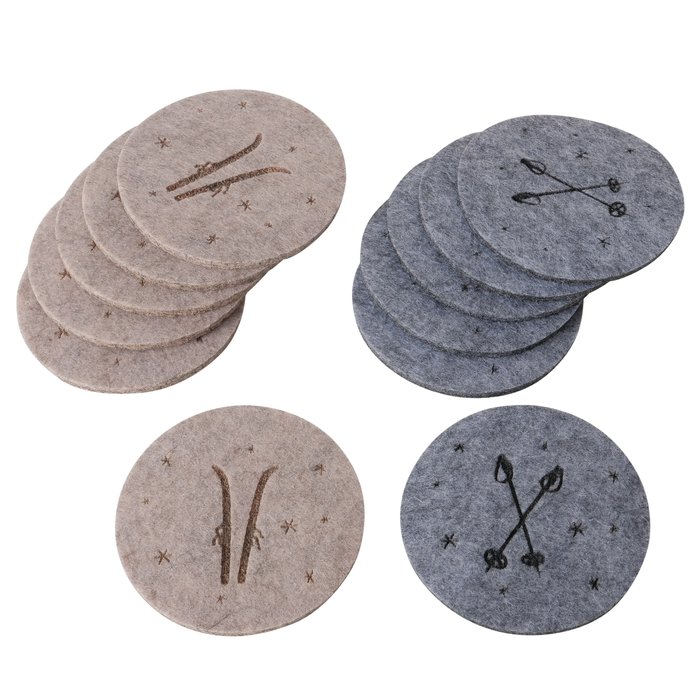 Herstellerinformationen zu "Filz Untersetzer Mountains Skistöcke, Ø10cm, grau, 6tlg, Boltze Home Collections"