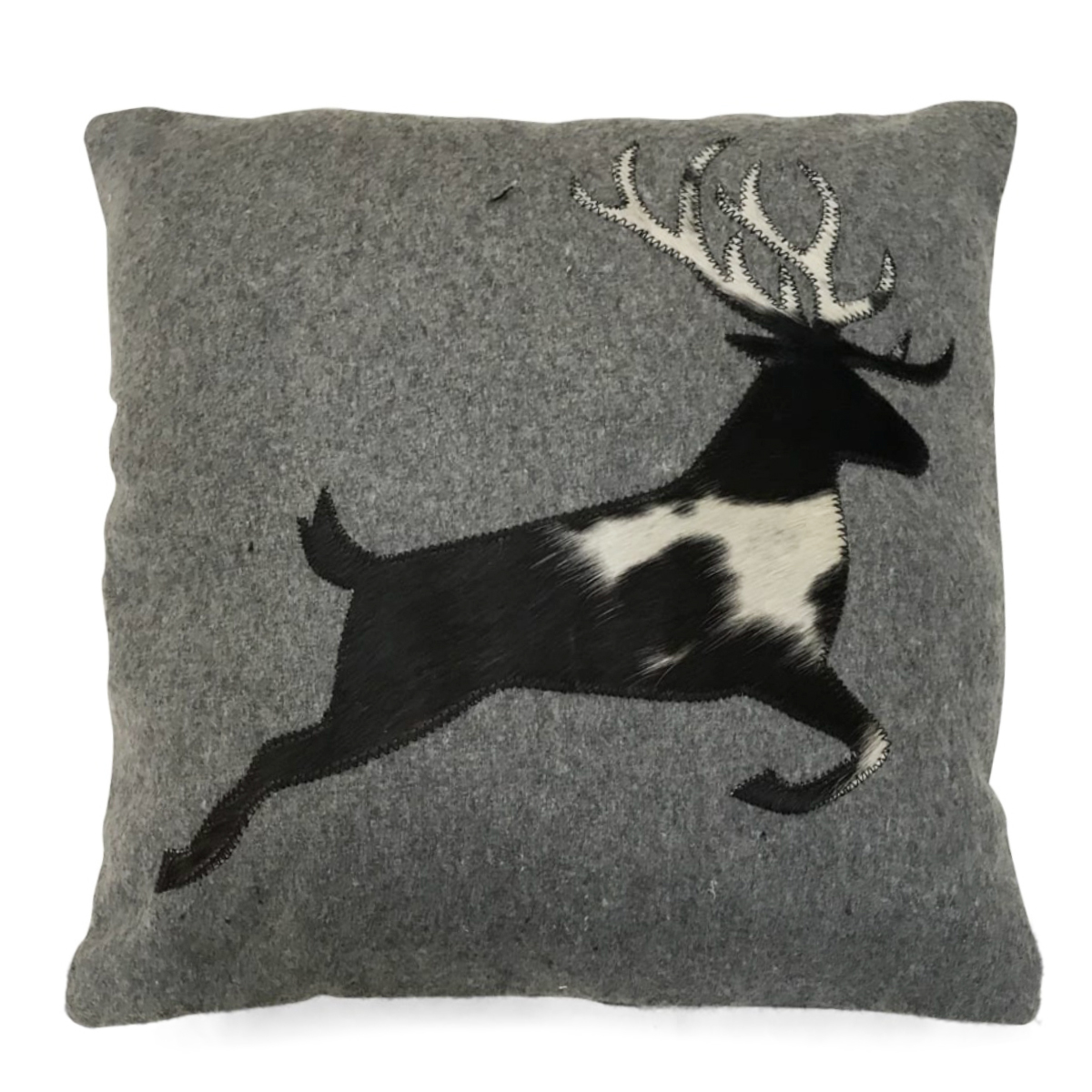 Filzkissen Hirsch, springender Hirsch schwarz-weiß, Applikation aus Kuhfell, 45x45cm, Mars & More