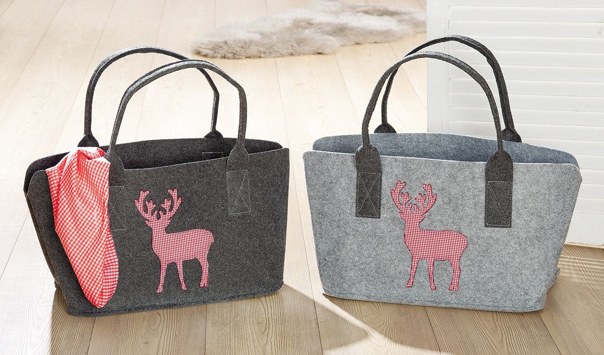 Herstellerinformationen zu "Filztasche Hirsch, Shopper Rotwild, rot/weiß karierter Hirsch, dunkles grau, 26x40cm, Gilde"