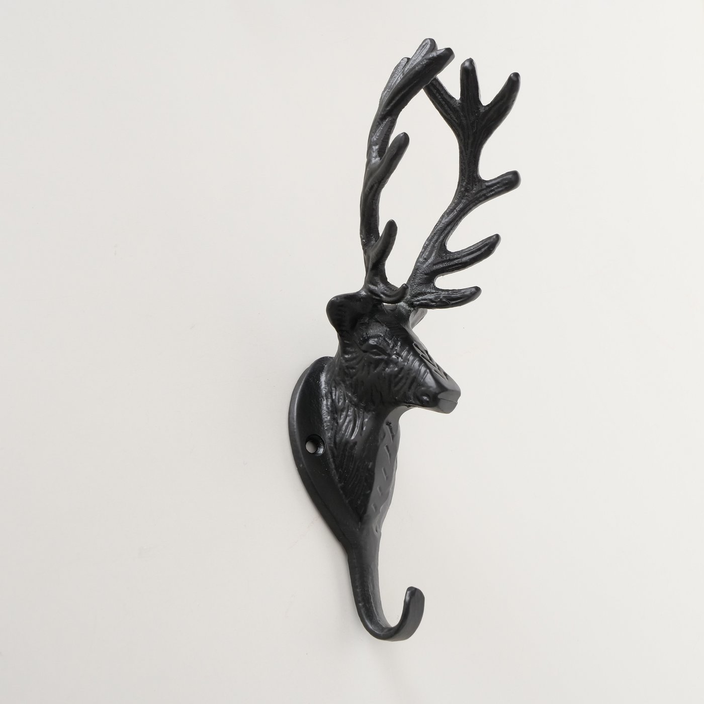 Garderobenhaken Hirsch Ali, Hirschkopf aus schwarzem Metall, 21cm, Boltze Home Collections