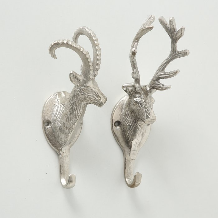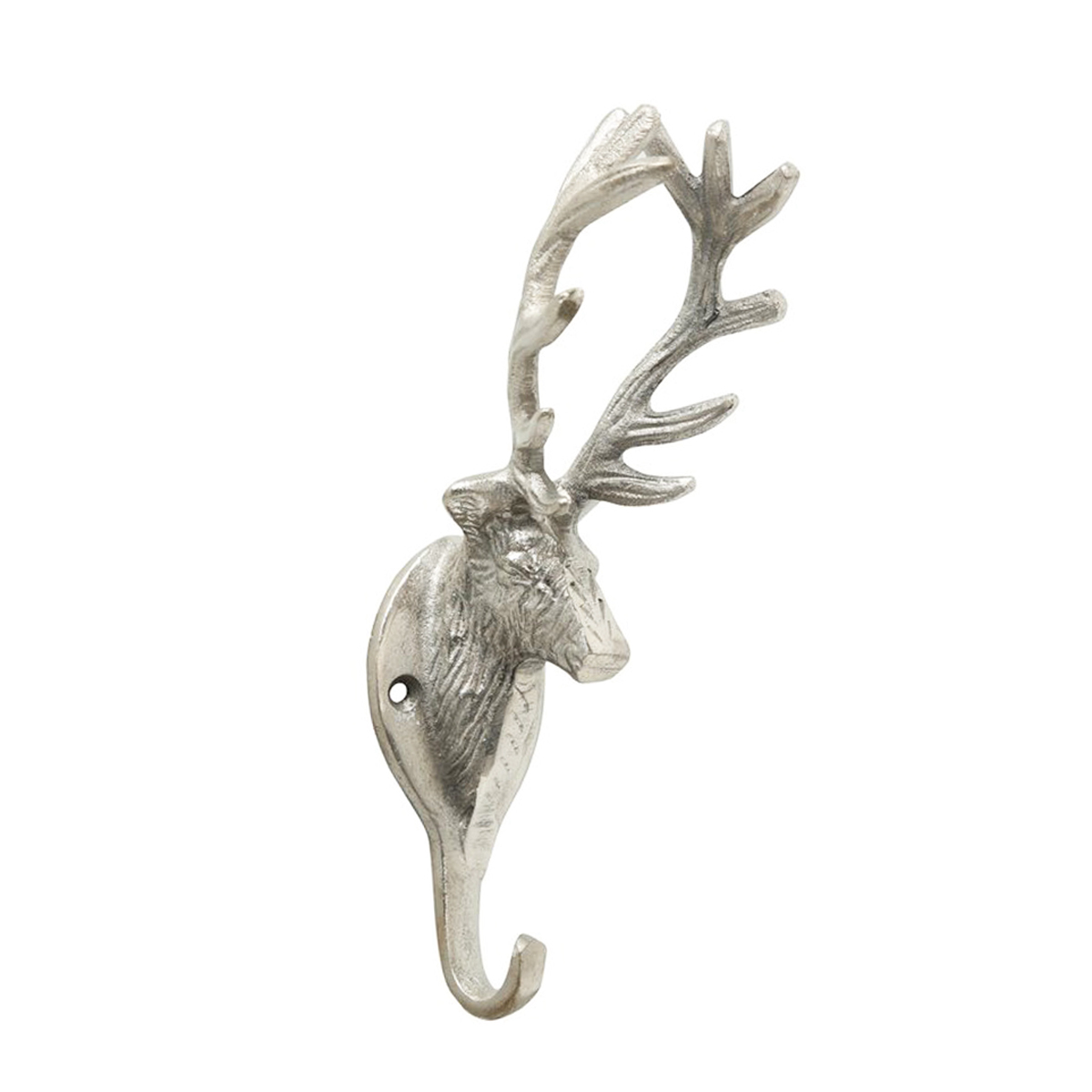 Garderobenhaken Hirsch Ali, Hirschkopf silber, 18cm, Boltze Home Collections