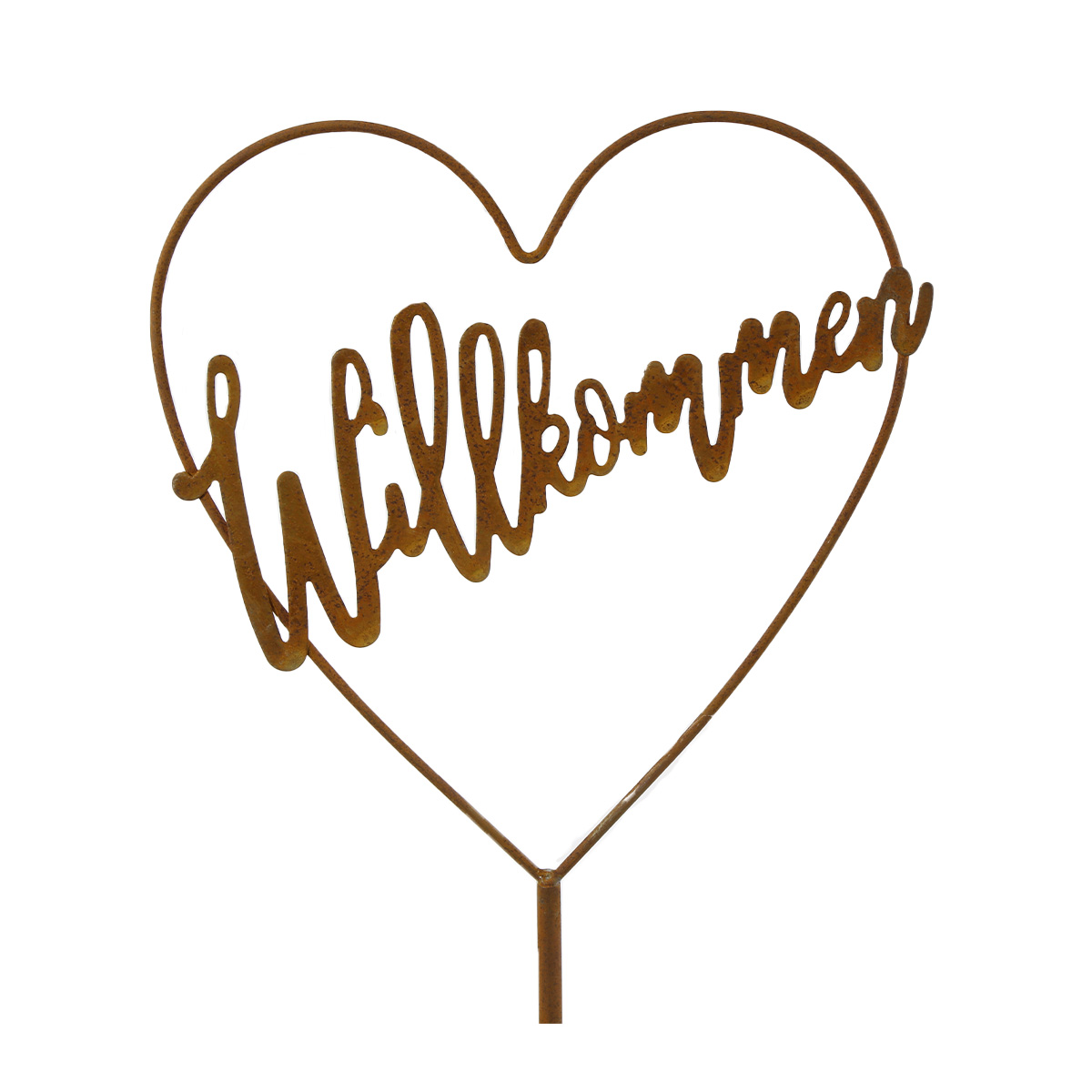 Gartenstecker Herz, Herz mit Willkommen, 20x90cm, Rost