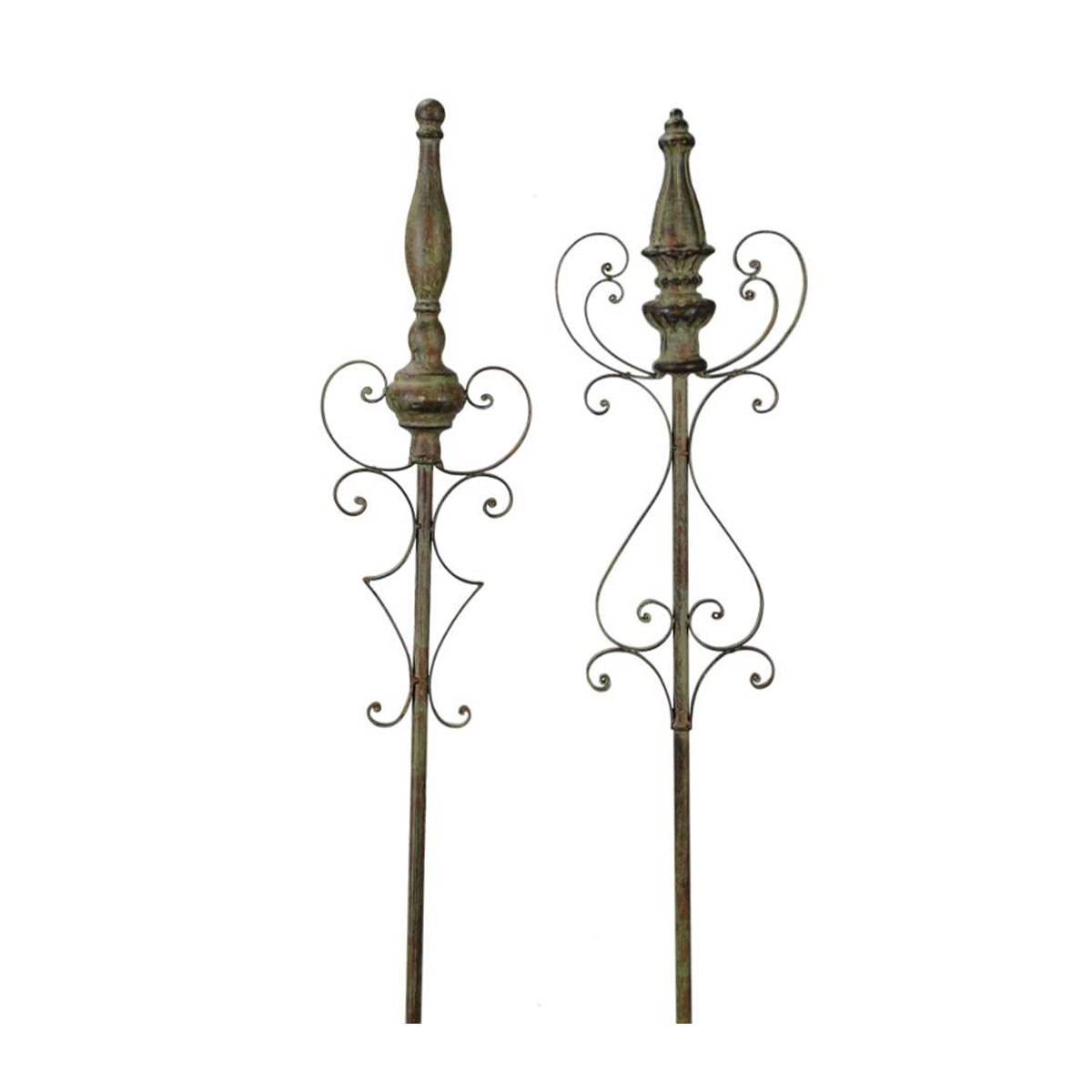 Dieser elegante Gartenstecker im nostalgischen Stil bringt einen Hauch von Vintage-Charme in jeden Garten, auf die Terrasse oder in große Blumentöpfe. Die feinen, geschwungenen Ornamente und die längliche Form erinnern an klassische Gartendekorationen vergangener Zeiten und wirken gleichzeitig zeitlos und stilvoll. Der grünliche Antiklook mit bewusst ungleichmäßiger Oberfläche unterstreicht den rustikalen Charakter und fügt sich harmonisch in natürliche Umgebungen ein.