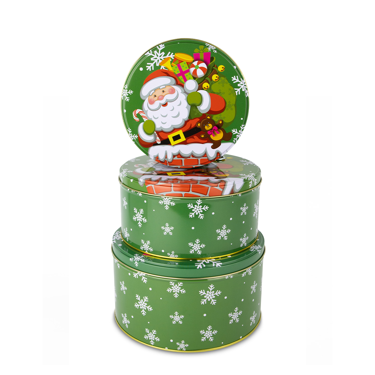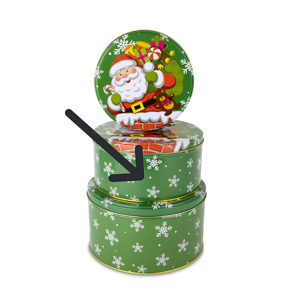Gebäckdose Weihnachtsmann im Schornstein, Keksdose rund aus Metall grün, 16x8cm