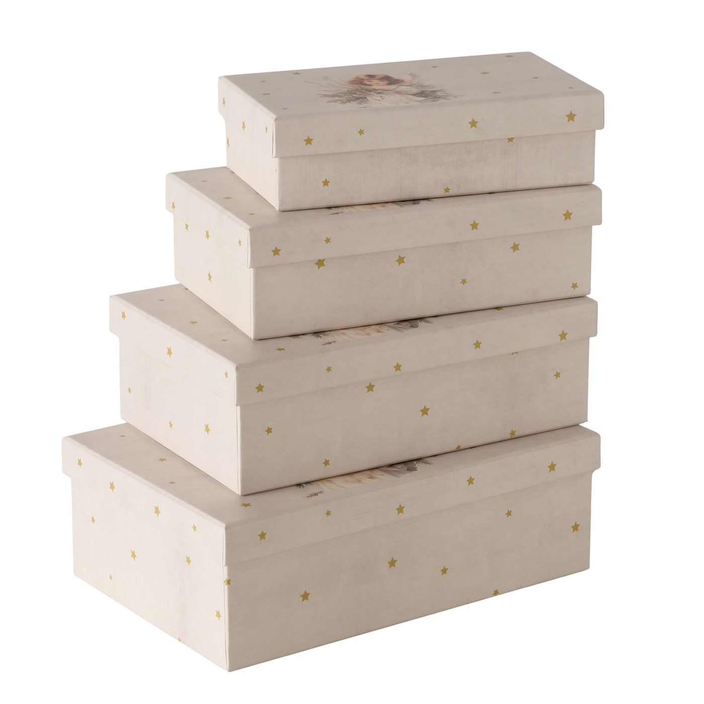 Wunderschön verpackt macht doppelt Freude – und genau dafür sind die Geschenkboxen aus der Engel Clara Serie gemacht. Mit ihrem liebevoll gestalteten Engelmotiv, zarten Goldsternen und der sanften Farbgebung in Cremeweiß bringen sie eine ruhige, nostalgische Weihnachtsstimmung in jedes Zuhause.