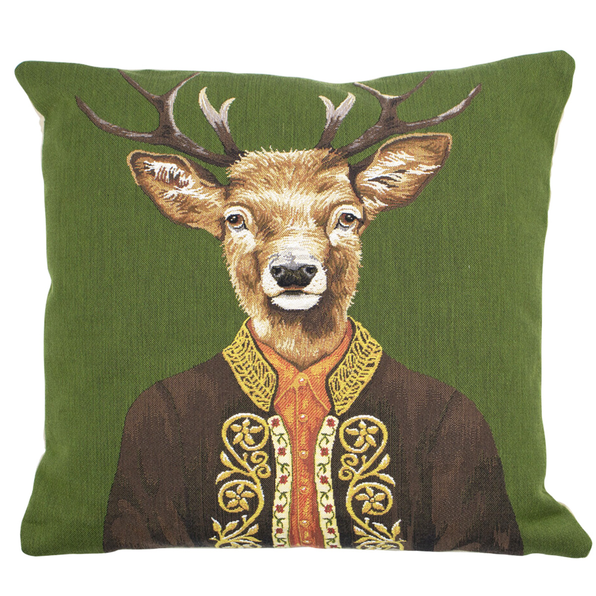 Gobelin Kissen Hirsch, Hirsch im Alpenmantel grün, 45x45cm, Mars & More