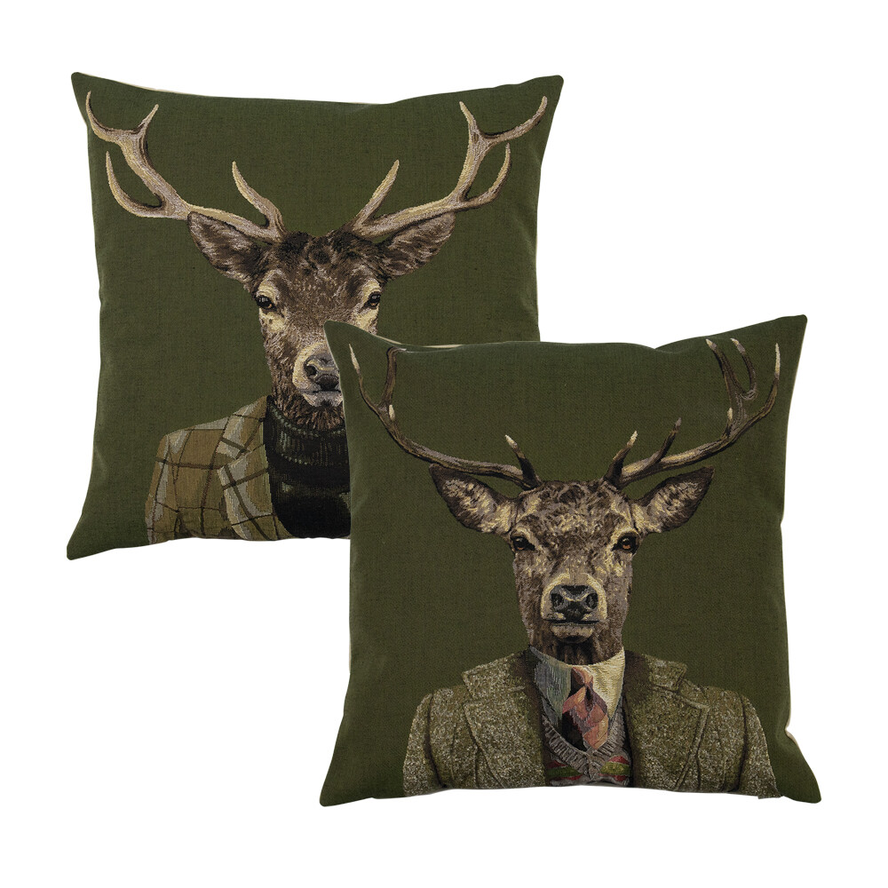 Gobelin Kissen Hirsch, Hirsch mit Jacke und Krawatte, grün , 45x45cm, Mars & More