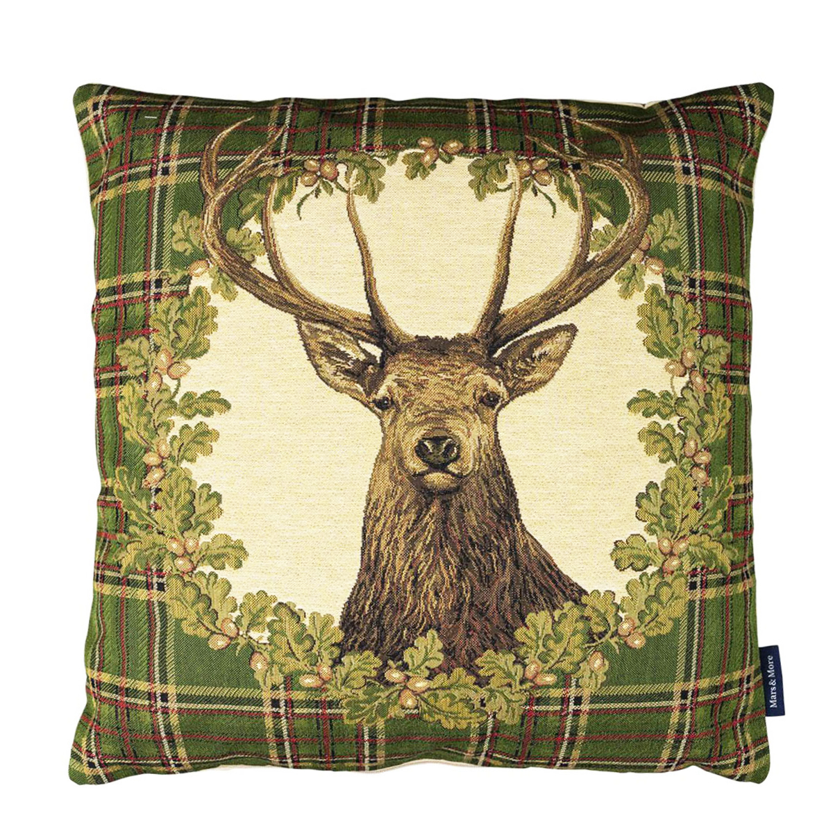 Produktinformationen "Gobelin Kissen Hirsch, Hirsch Tartan im Kranz, grün kariert, 45x45cm, Mars & More"