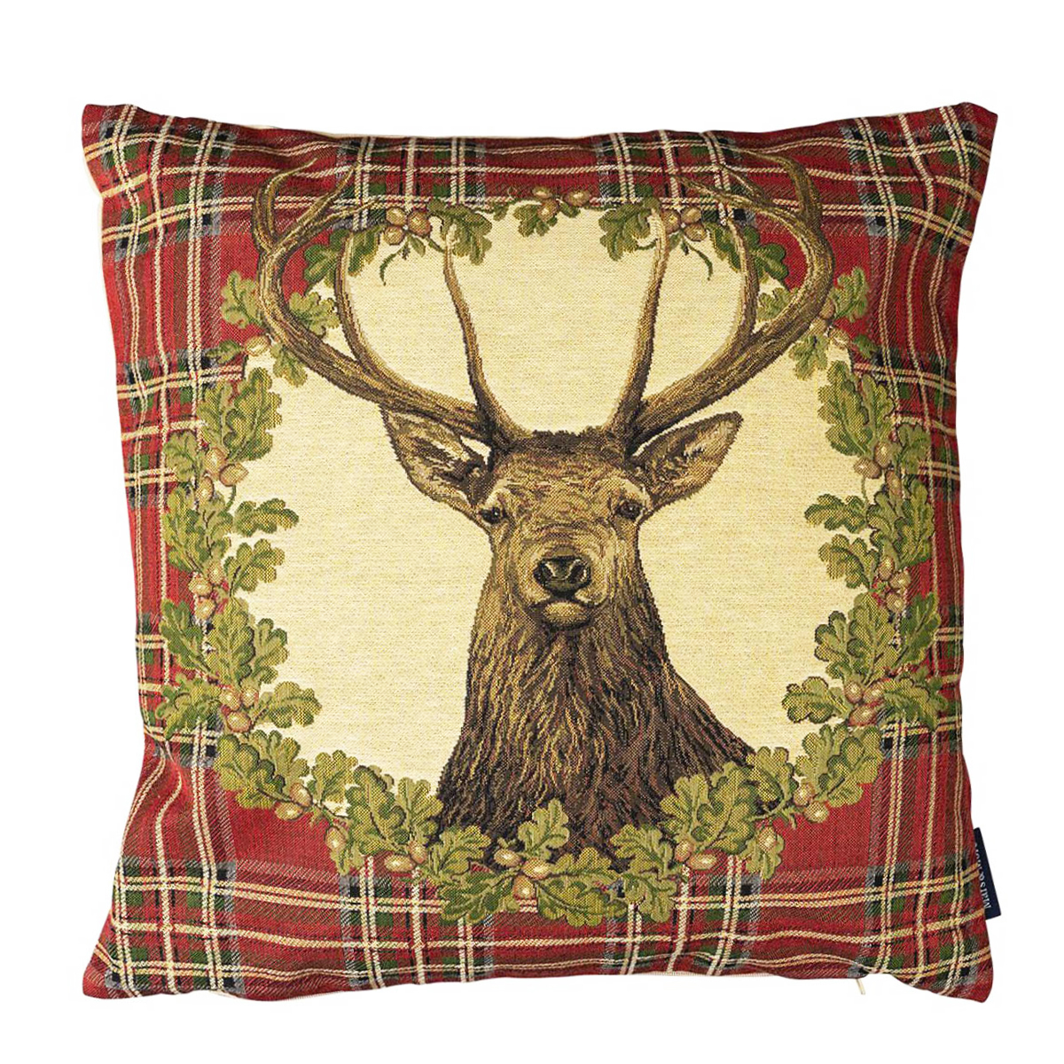 Produktinformationen "Gobelin Kissen Hirsch, Hirsch Tartan im Kranz, rot kariert, 45x45cm, Mars & More"