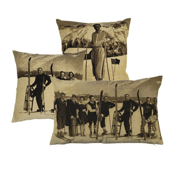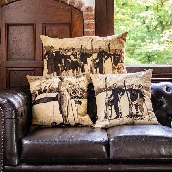 Produktinformationen "Gobelin Kissen Skifahrer Nostalgie, Skifahrergruppe, Sepia, 45x45cm, Mars & More"