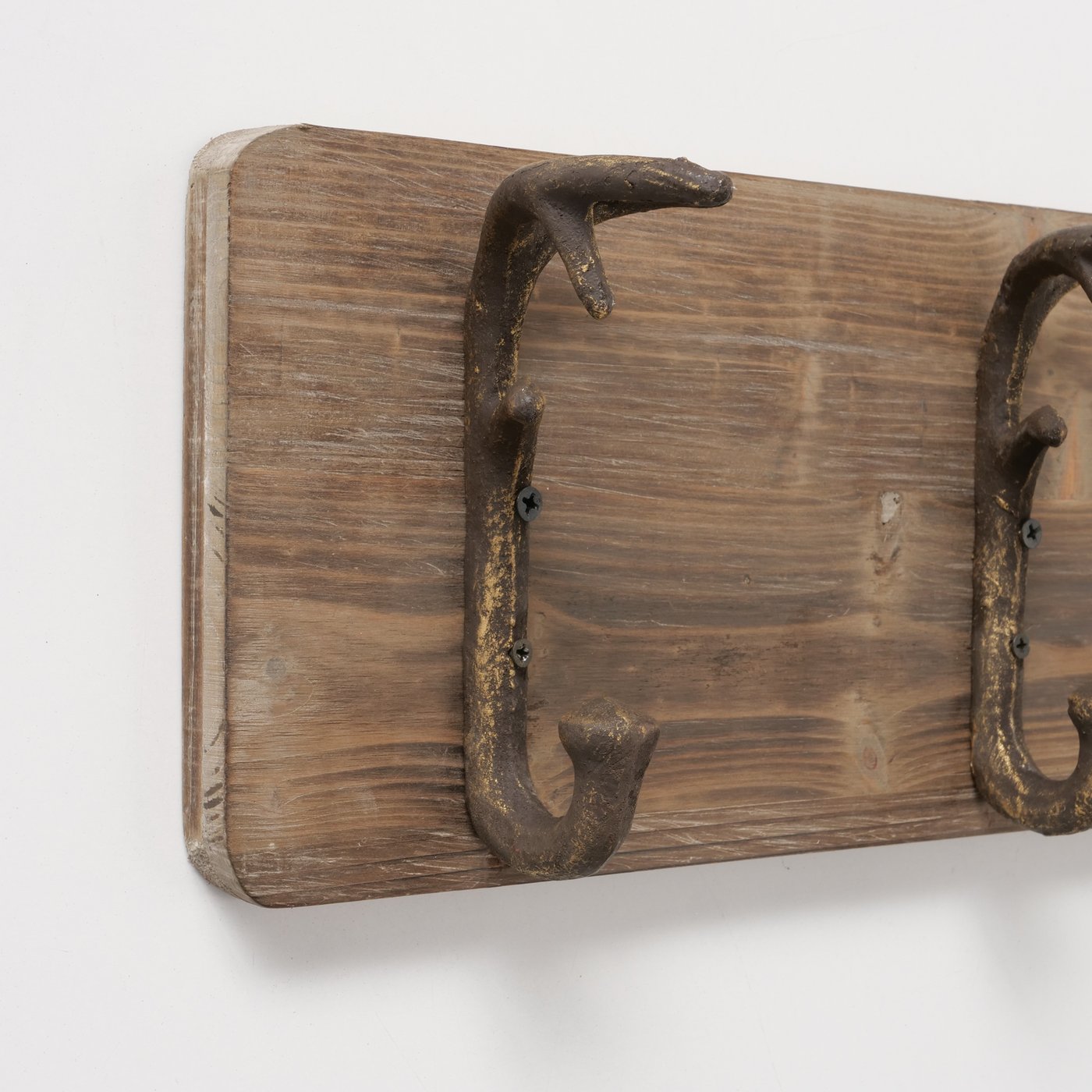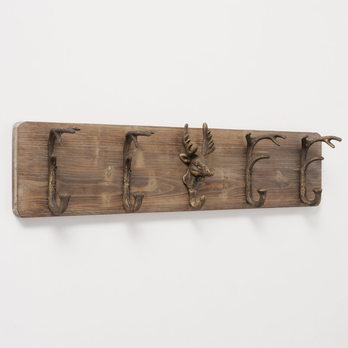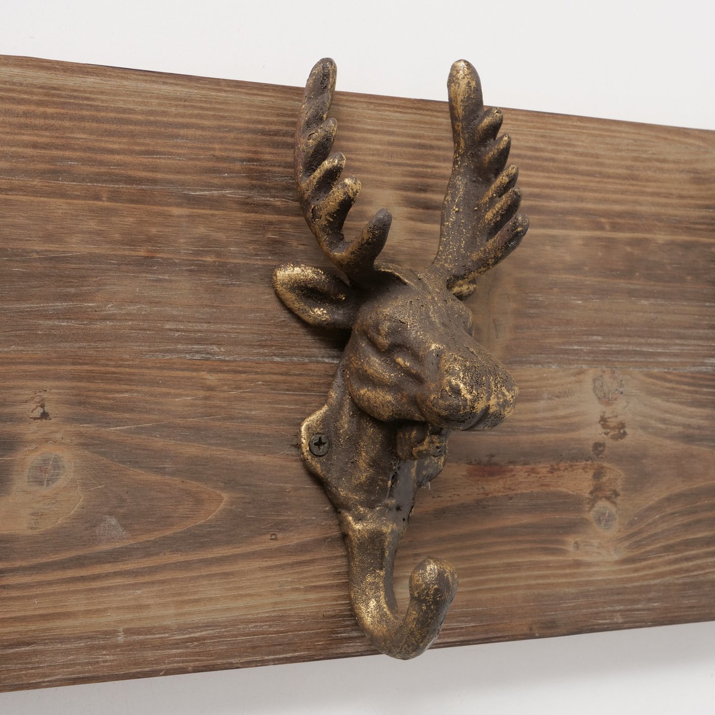 Holz-Garderobe Banjo mit Hirsch und Geweih, 5 Haken, 80cm, Boltze Home Collections