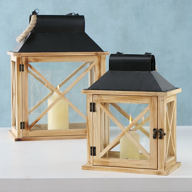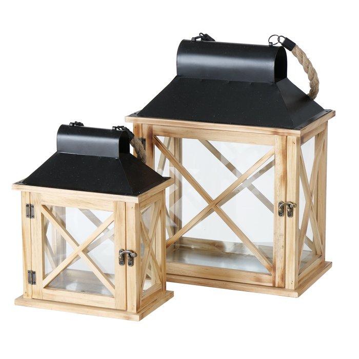 Holz Laterne Moritz mit Metalldach und Juteseil, 31x22cm, Boltze
