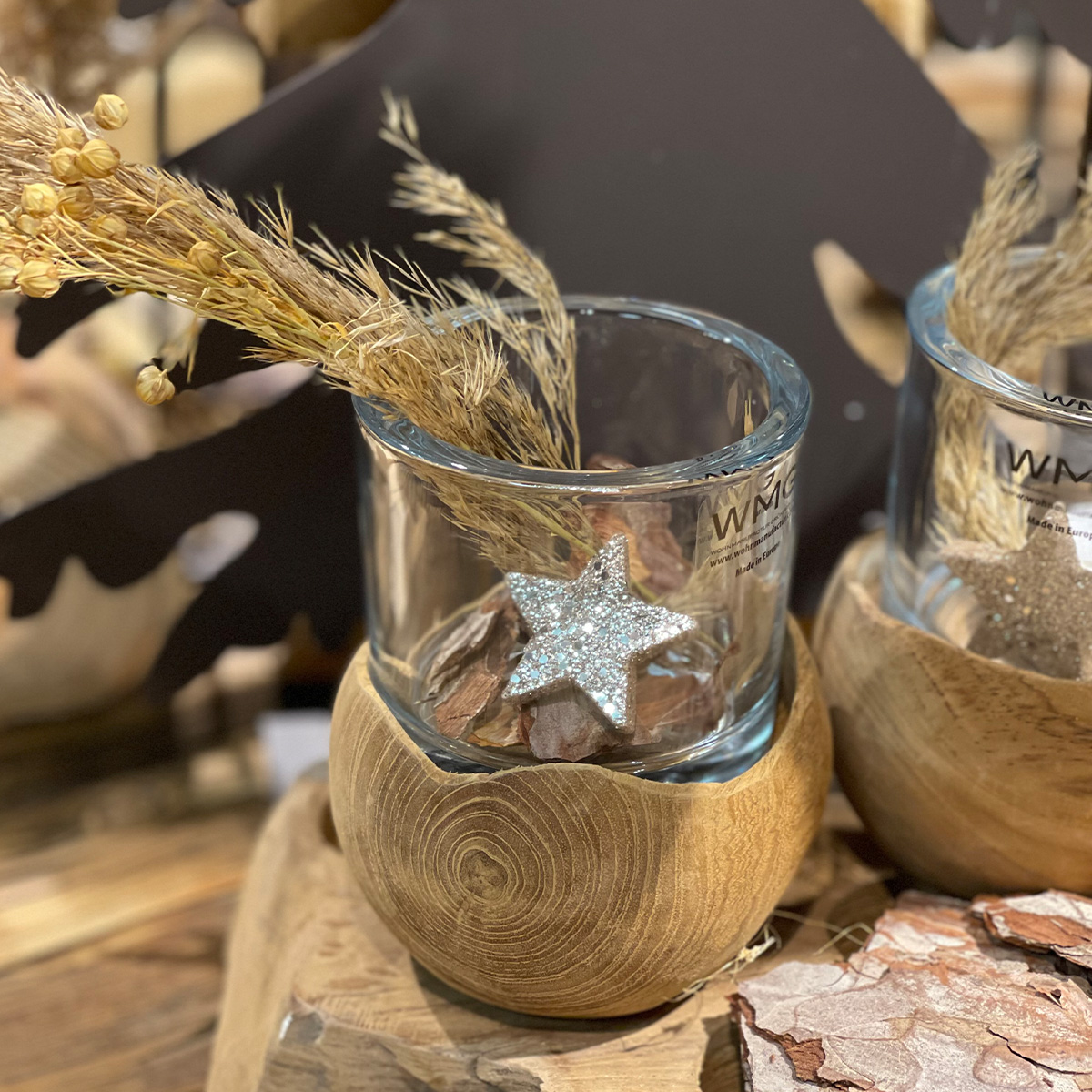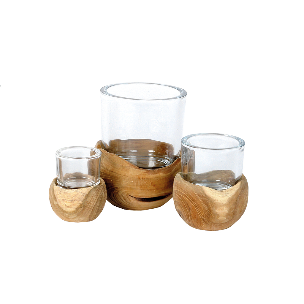 Holz Windlicht Teak, 15cm, WMG Grünberger