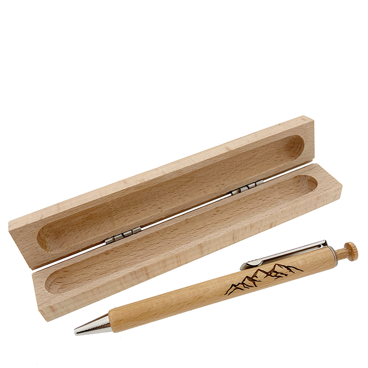 Holzkugelschreiber mit passendem Holzetui und Berge Gravur, 17x3cm, Point/Set