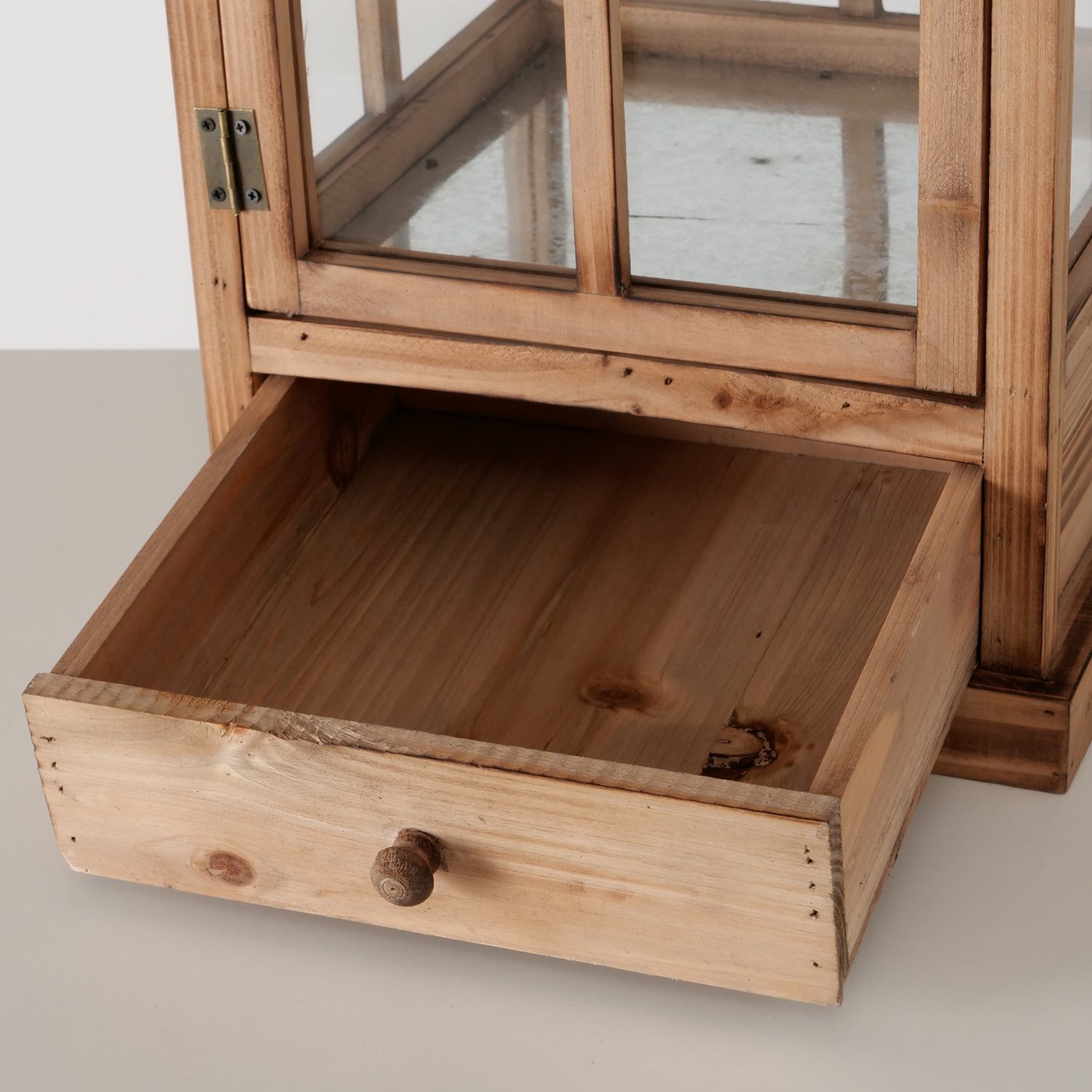 Holzlaterne Brighton natur im Shabby Look, rustikales Windlicht mit Schublade, 80cm, Boltze Home Collections