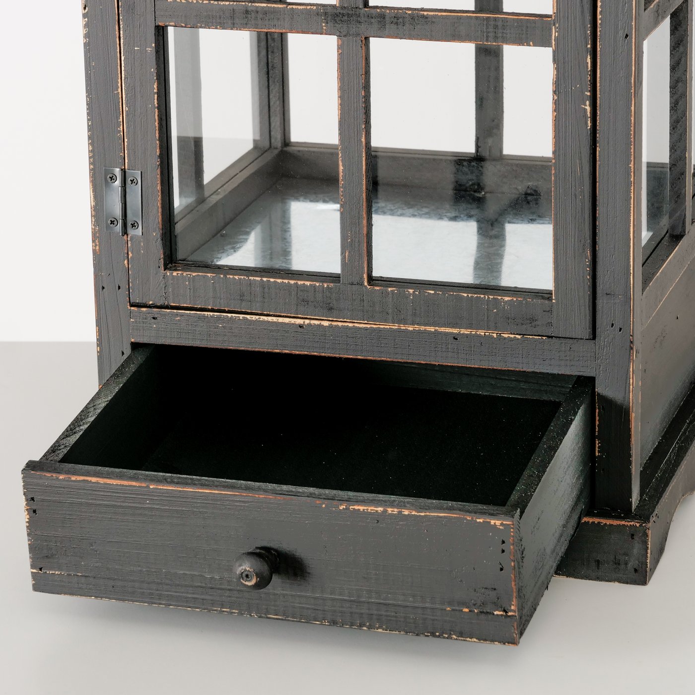 Produktinformationen "Holzlaterne Brighton schwarz im Shabby Look, rustikales Windlicht mit Schublade, 80cm, Boltze Home Collections"